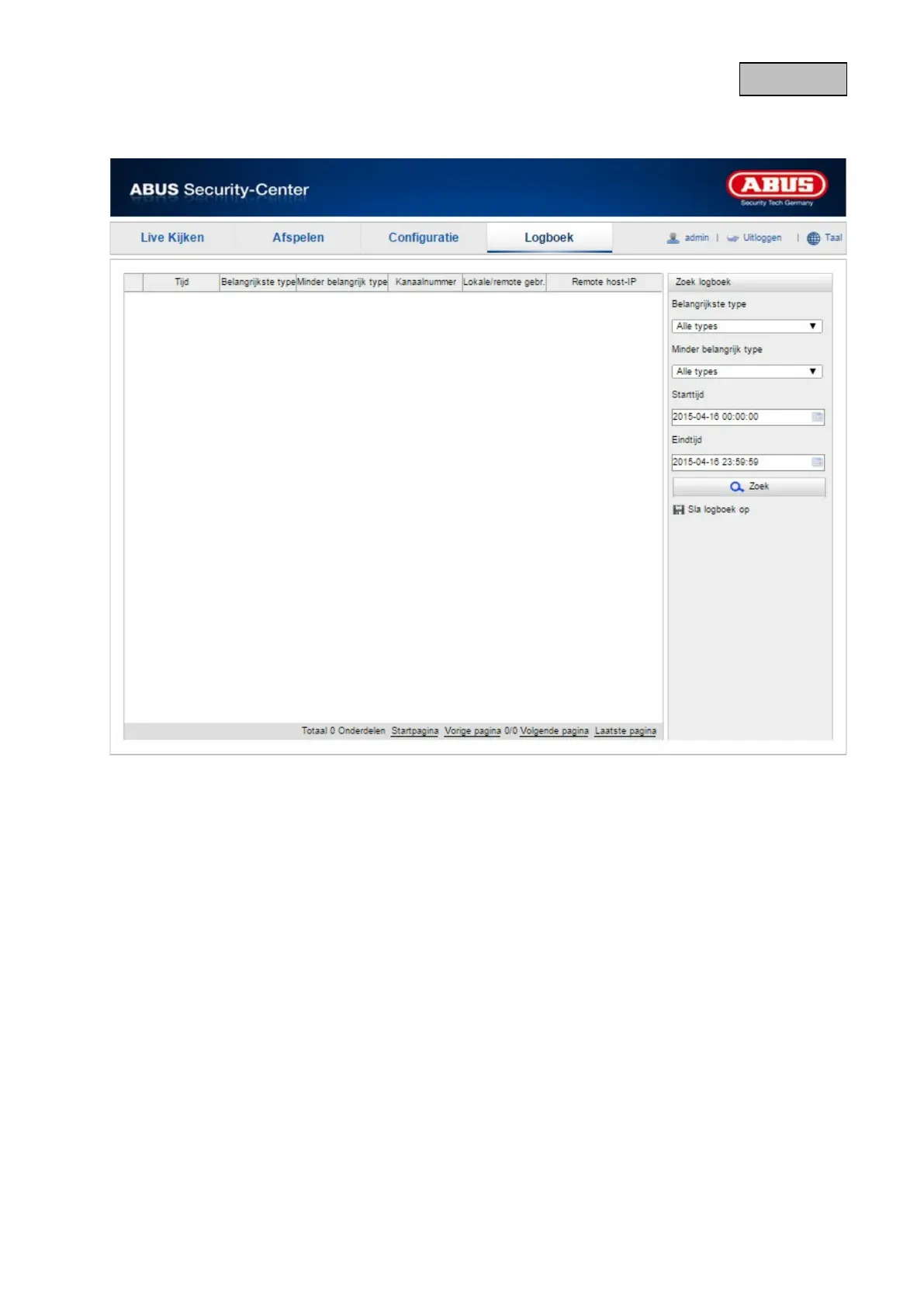 Camera-parameters zoals alarm, uitzonderingen, bedrijf en informatie kunnen in protocolbestanden