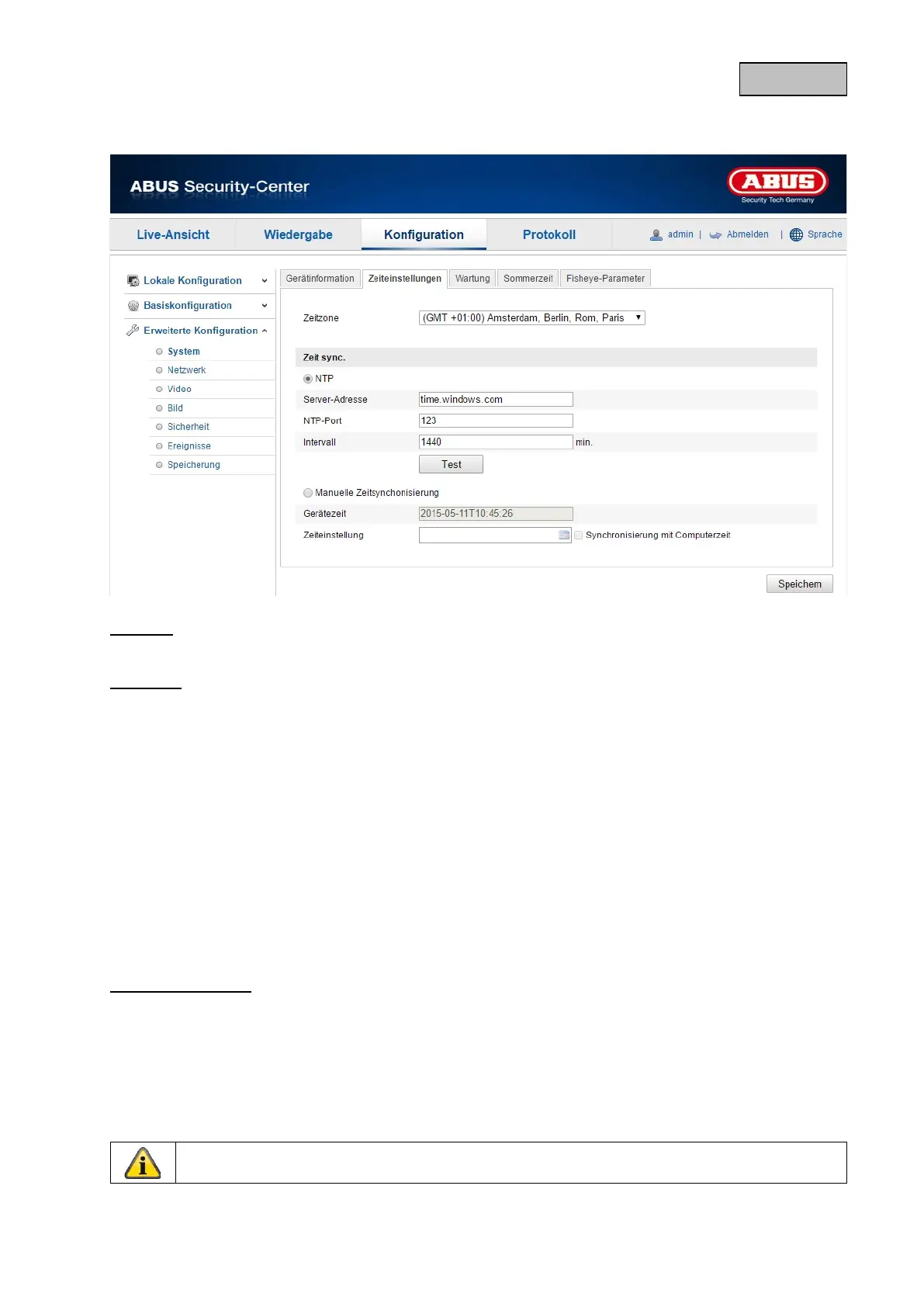 Mit Hilfe des Network Time Protokolls (NTP) ist es möglich, die Uhrzeit der Kamera mit einem