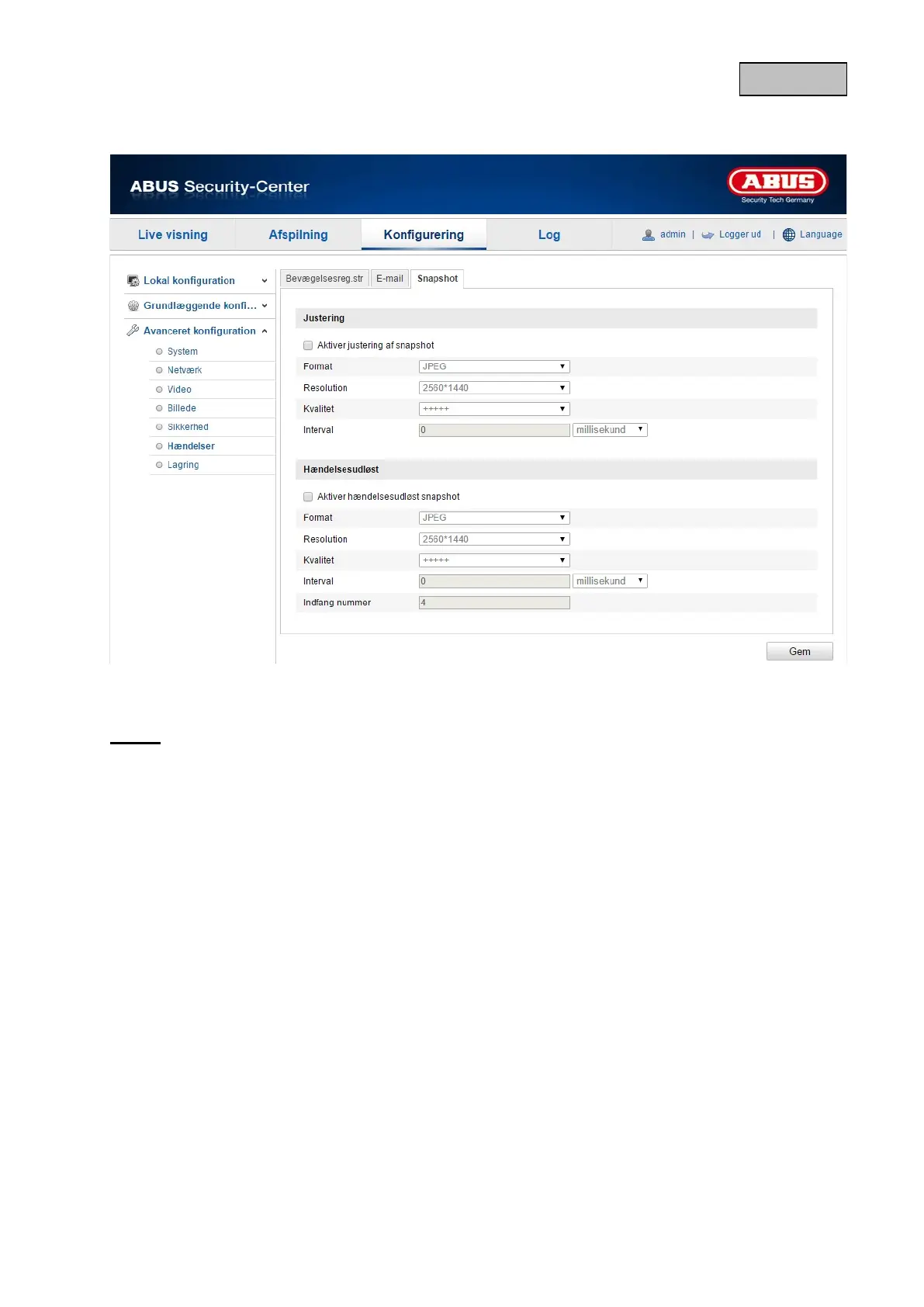 Her kan du konfigurere tids- og hændelsesstyrede snapshots for at gemme dem på microSD-kortet.