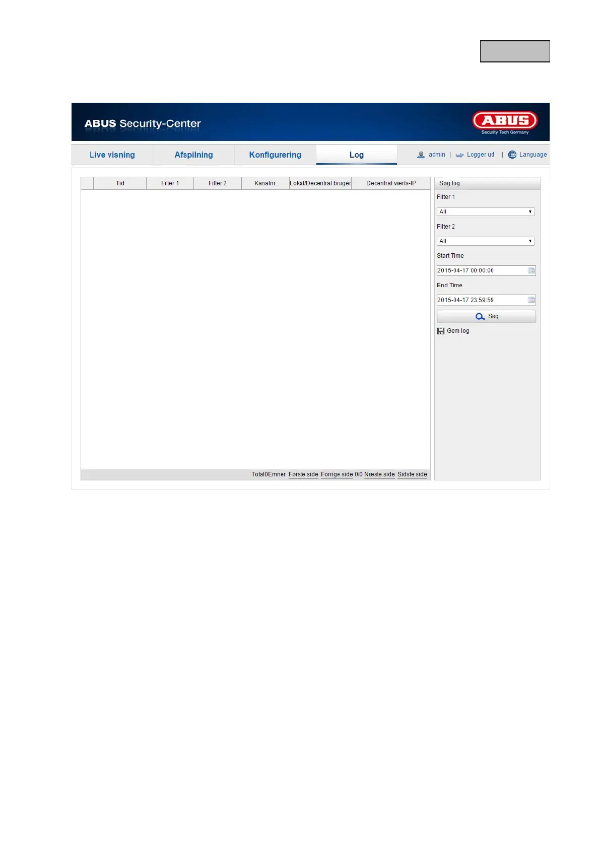 3. Klik på "Søg" for at søge efter protokolfiler. De pågældende protokolfiler vises i