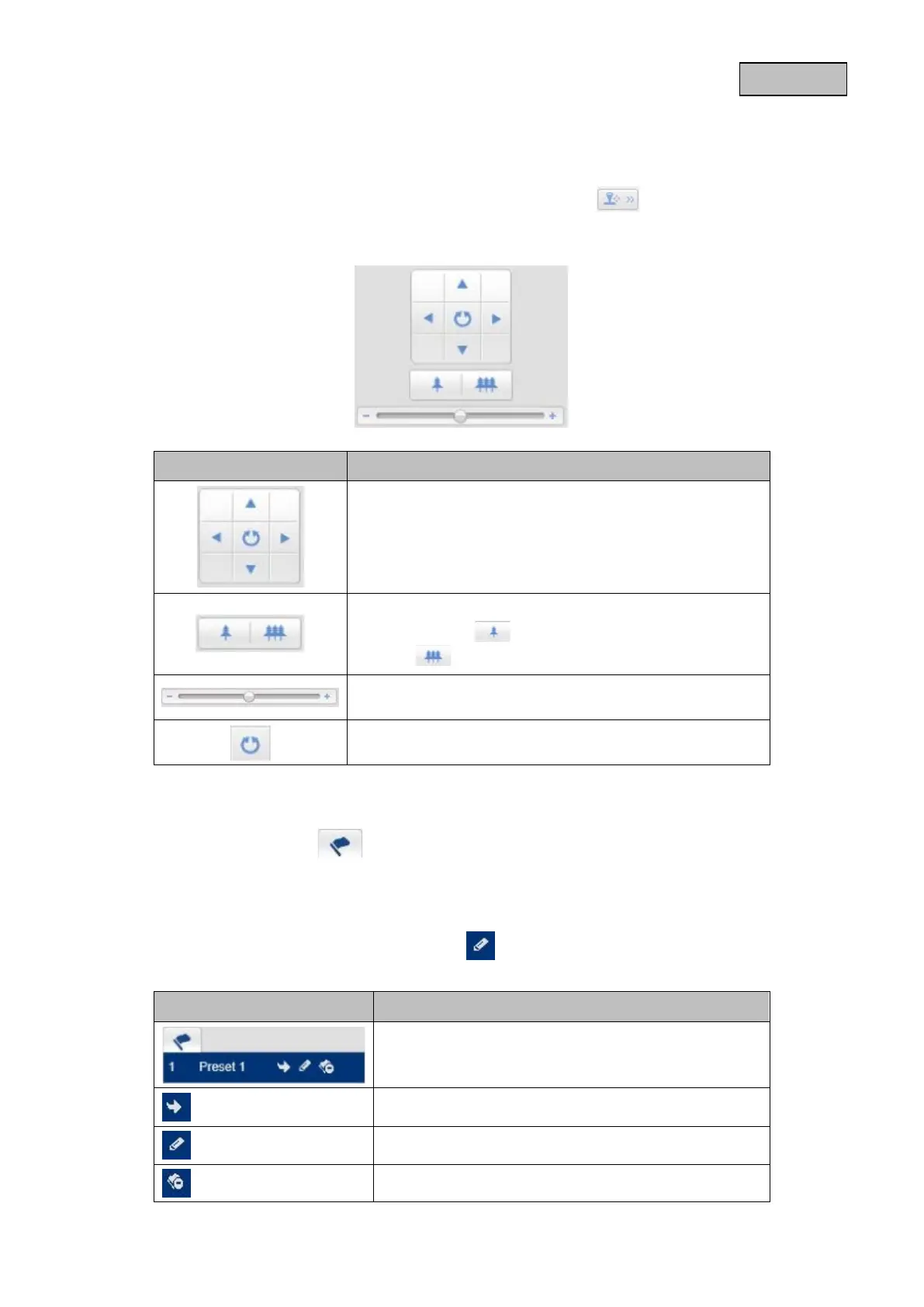 Aby wyświetlić sterowanie PTZ, kliknij w podglądzie na żywo pole .