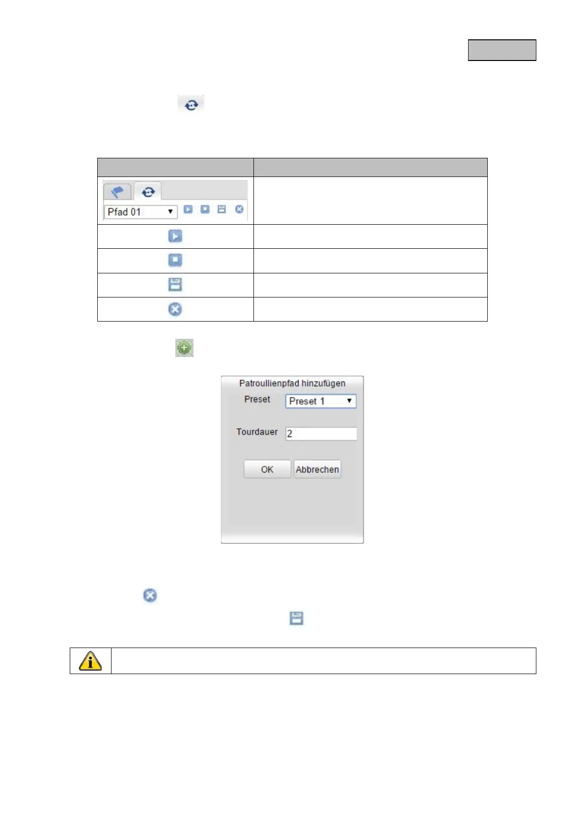 Dodaj żądane ustawienia Preset i wciśnij przycisk , aby zapisać patrol.