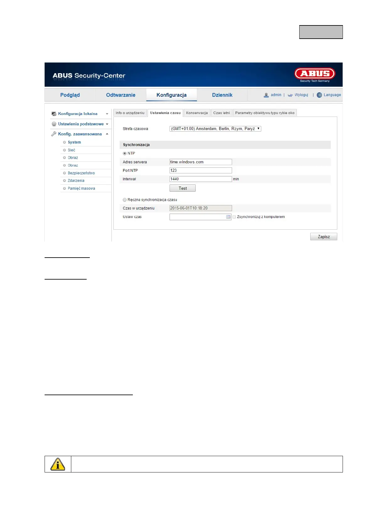 Aby skorzystać z tej funkcji, należy aktywować NTP.