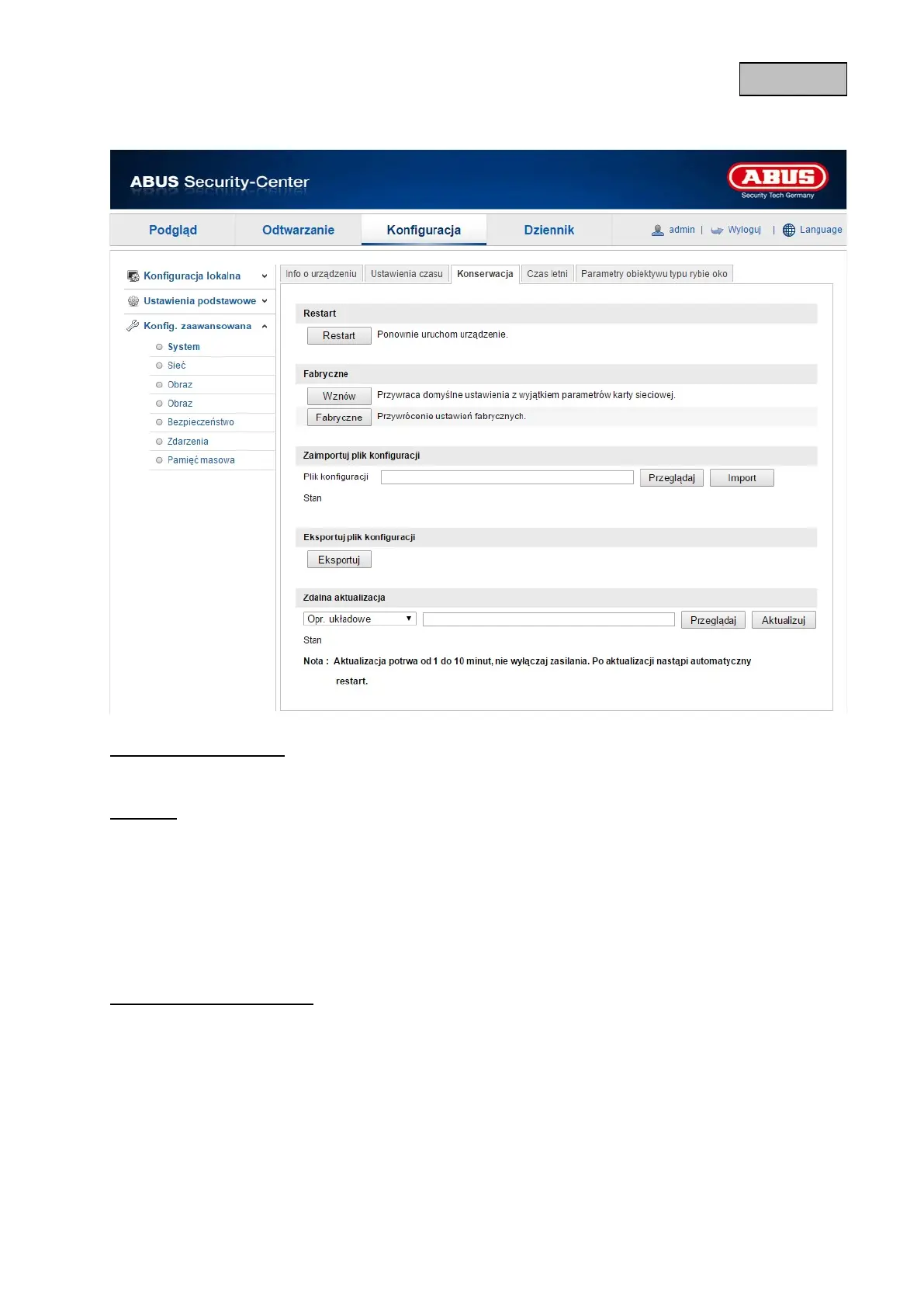 Kliknij „Wznów”, aby zresetować wszystkie parametry oprócz parametrów IP do wartości