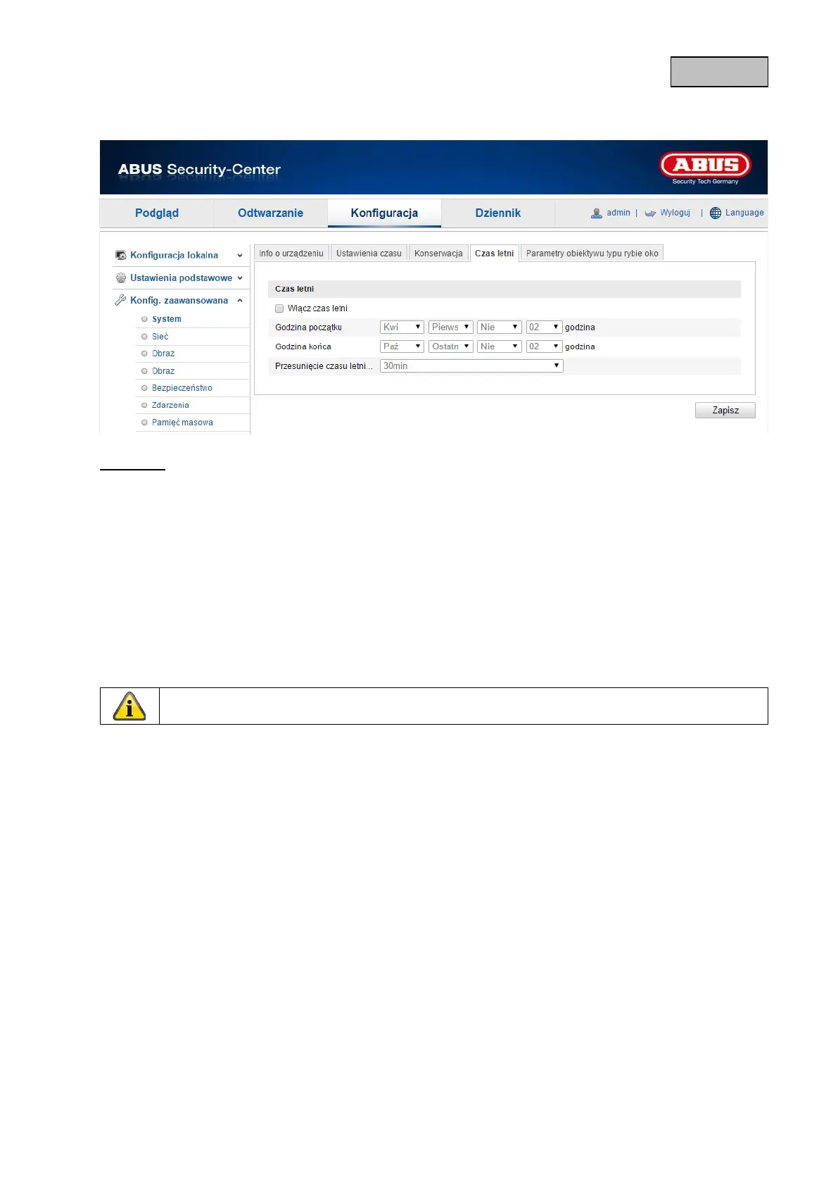 W tym miejscu można zdefiniować moment przestawienia na czas letni.