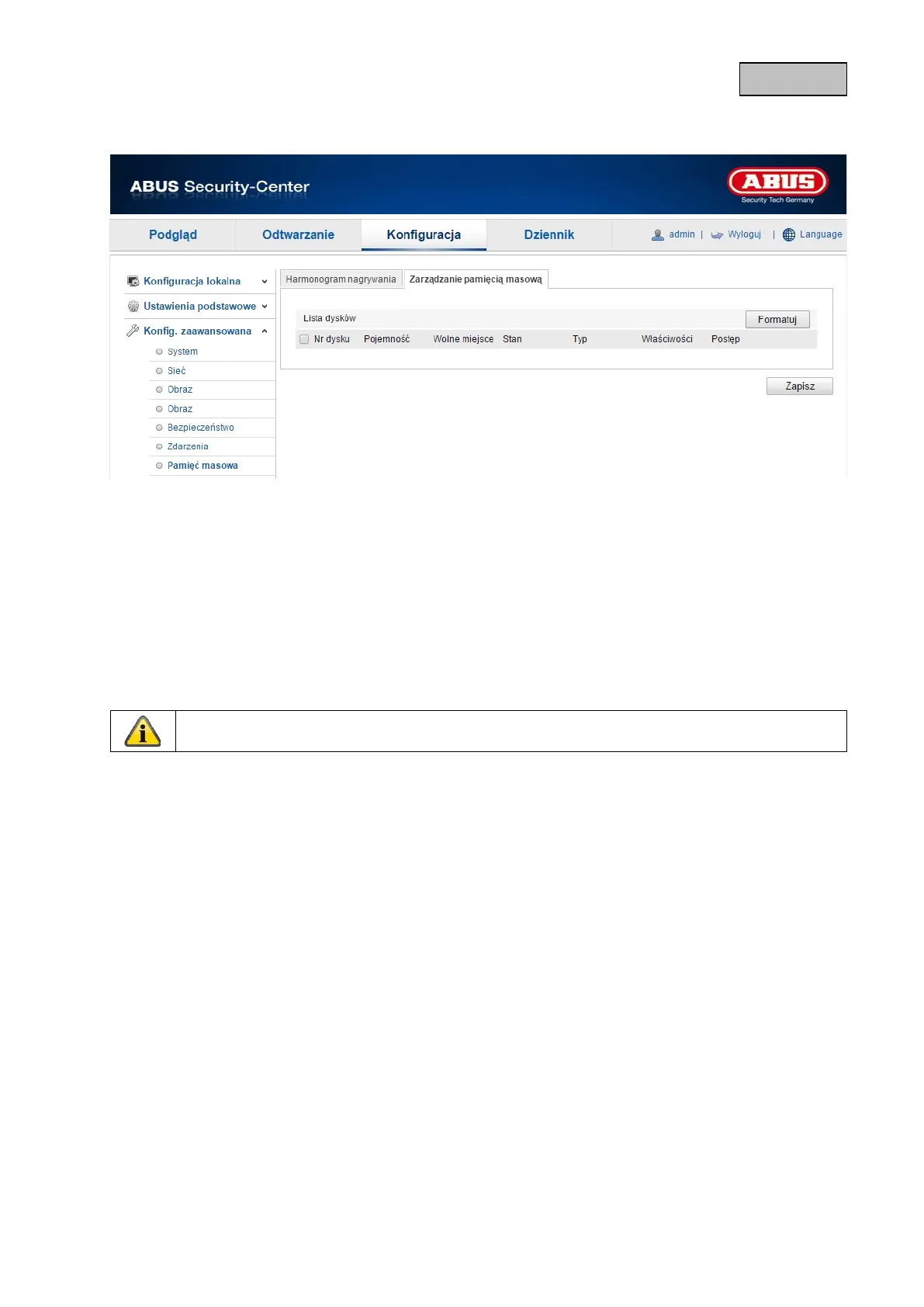 W tym miejscu dostępna jest możliwość sformatowania zastosowanej karty microSD i wyświetlenia