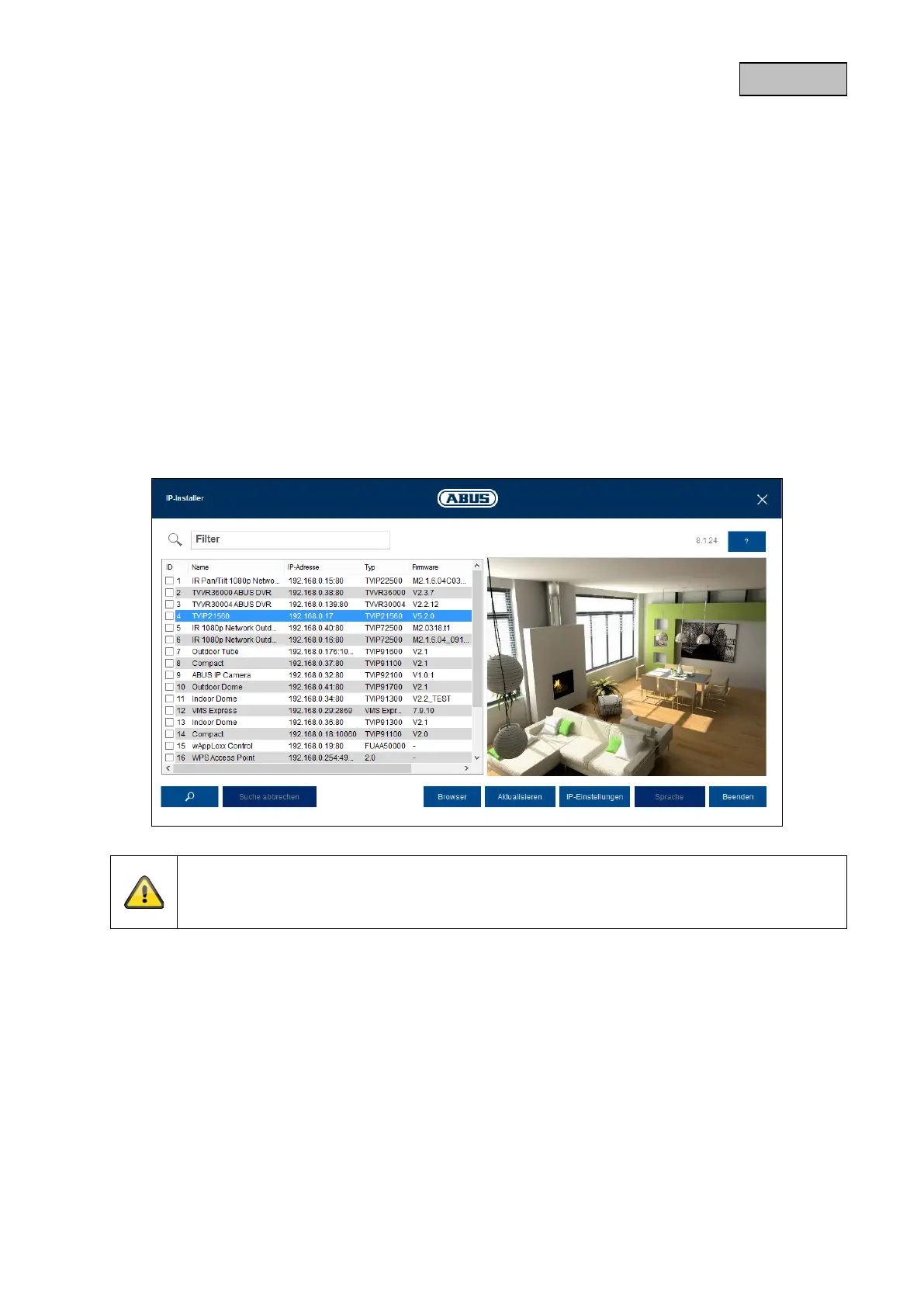 После запуска Помощник обнаружит все подключенные к вашей сети сетевые камеры ABUS и