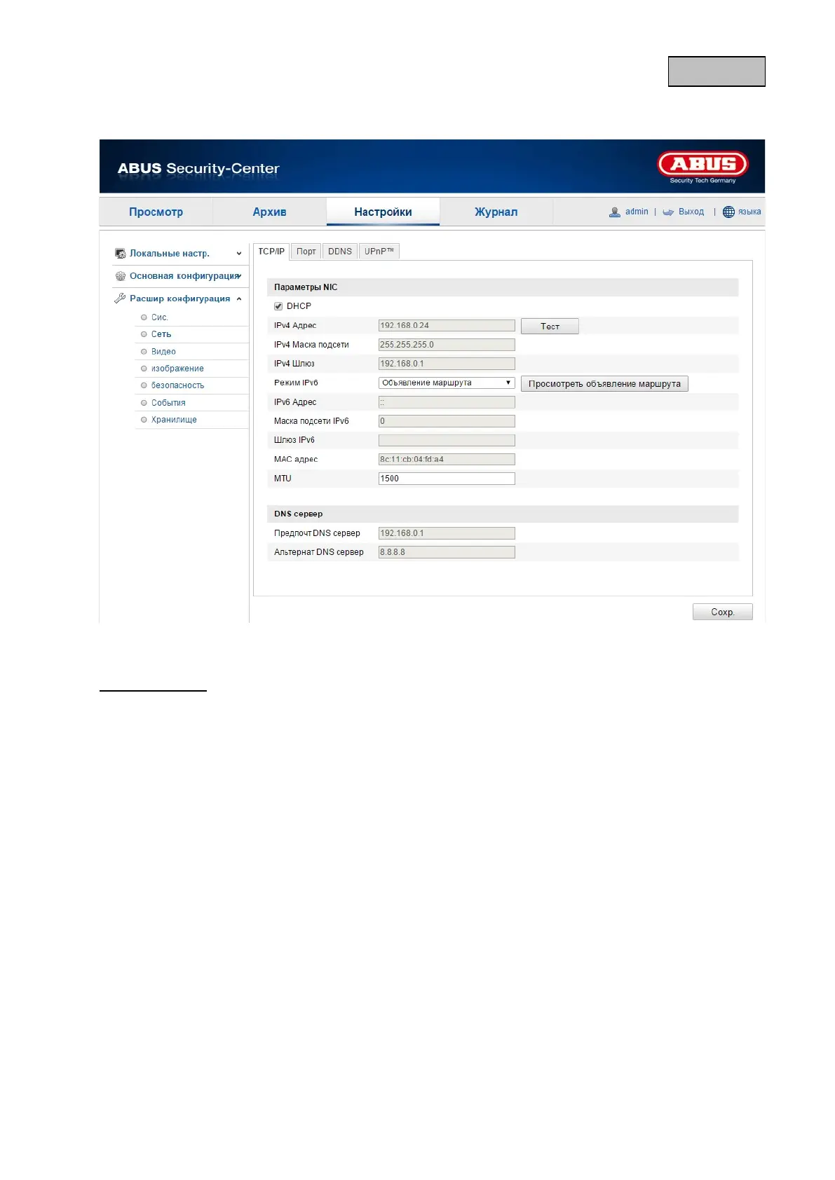 Для использования камеры в сети необходимо корректно настроить параметры TCP/IP.