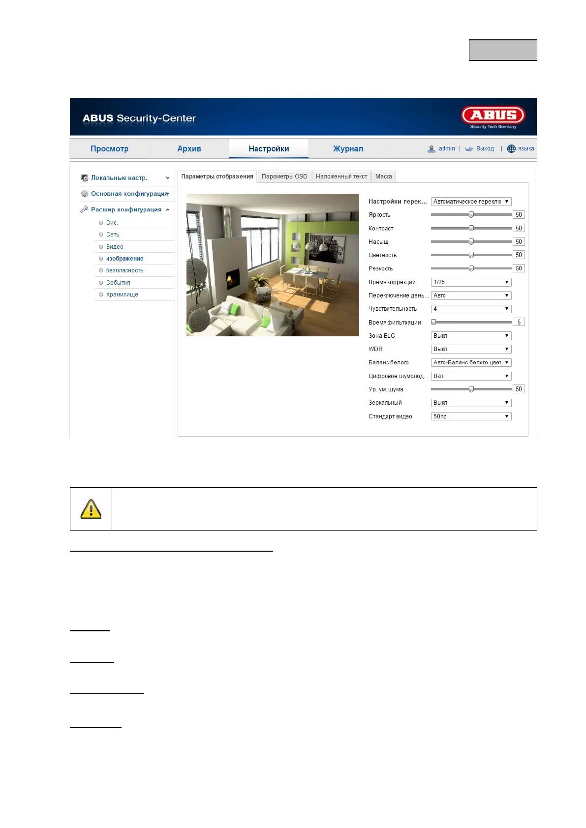 Следующие настройки могут осуществляться для дневного или ночного режима
