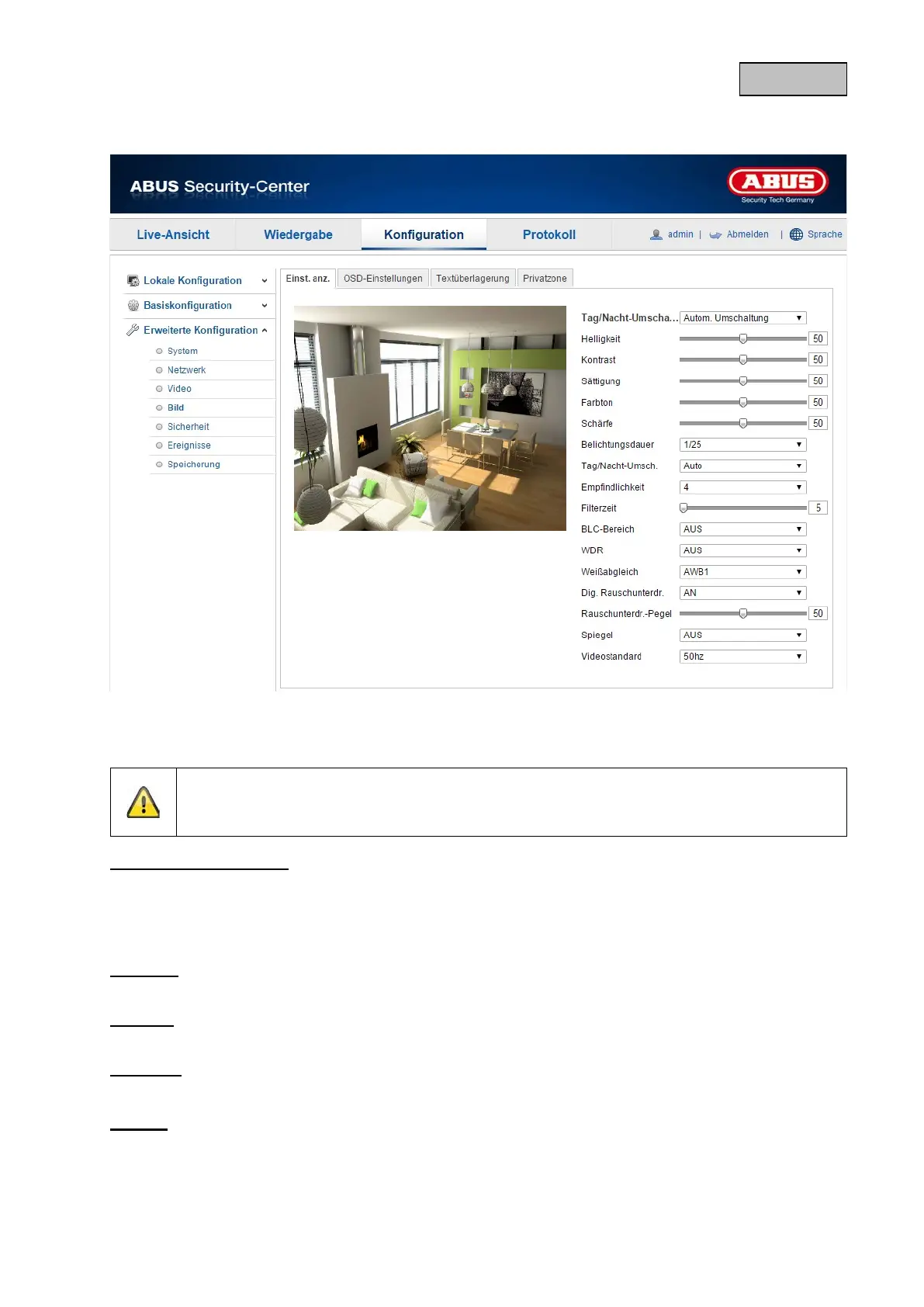 Unter diesem Menüpunkt können Sie die Bildqualität der Kamera, einschließlich Helligkeit, Schärfe,