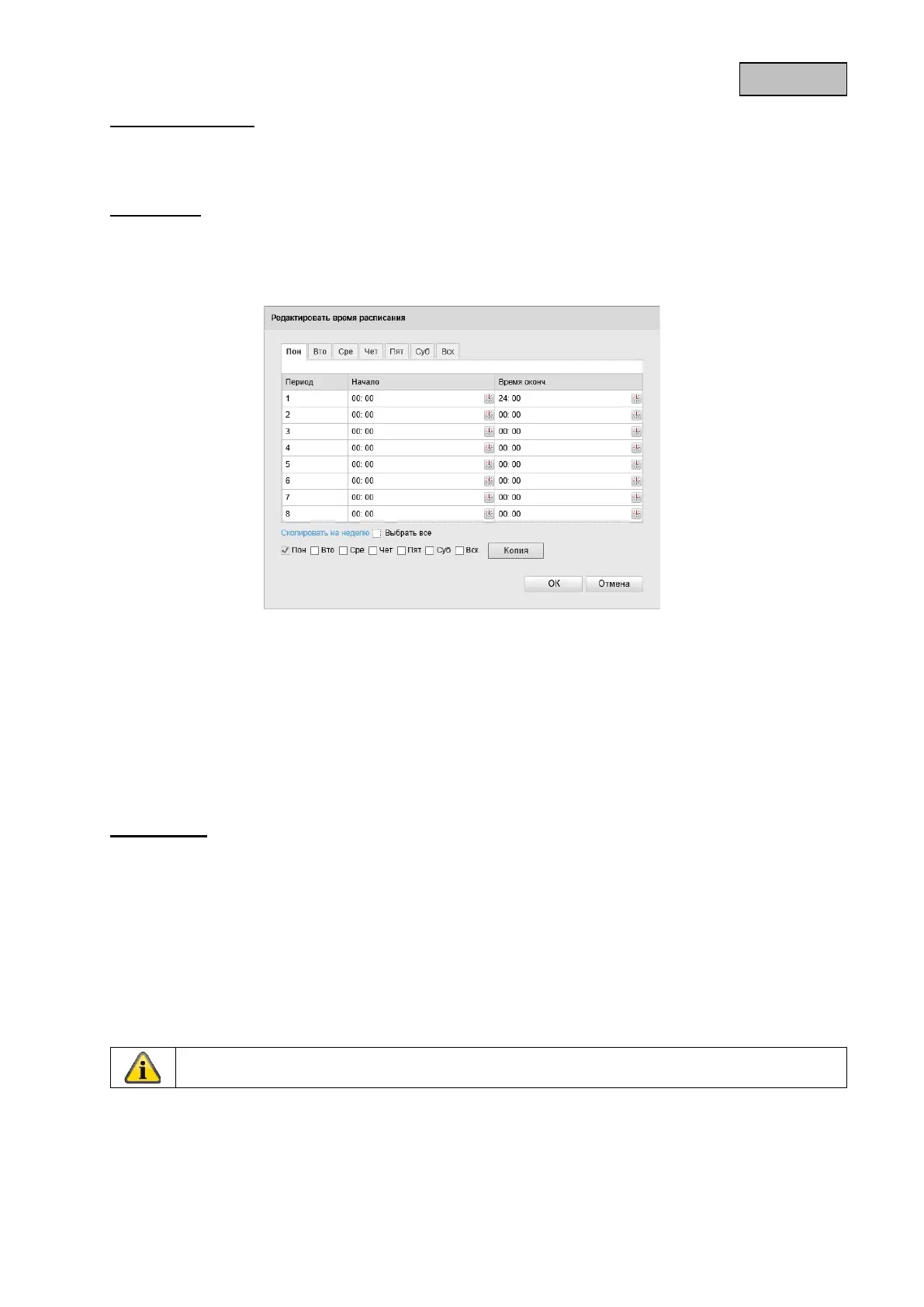 Выберите день недели для записи при распознавании движения. Для задания определенного