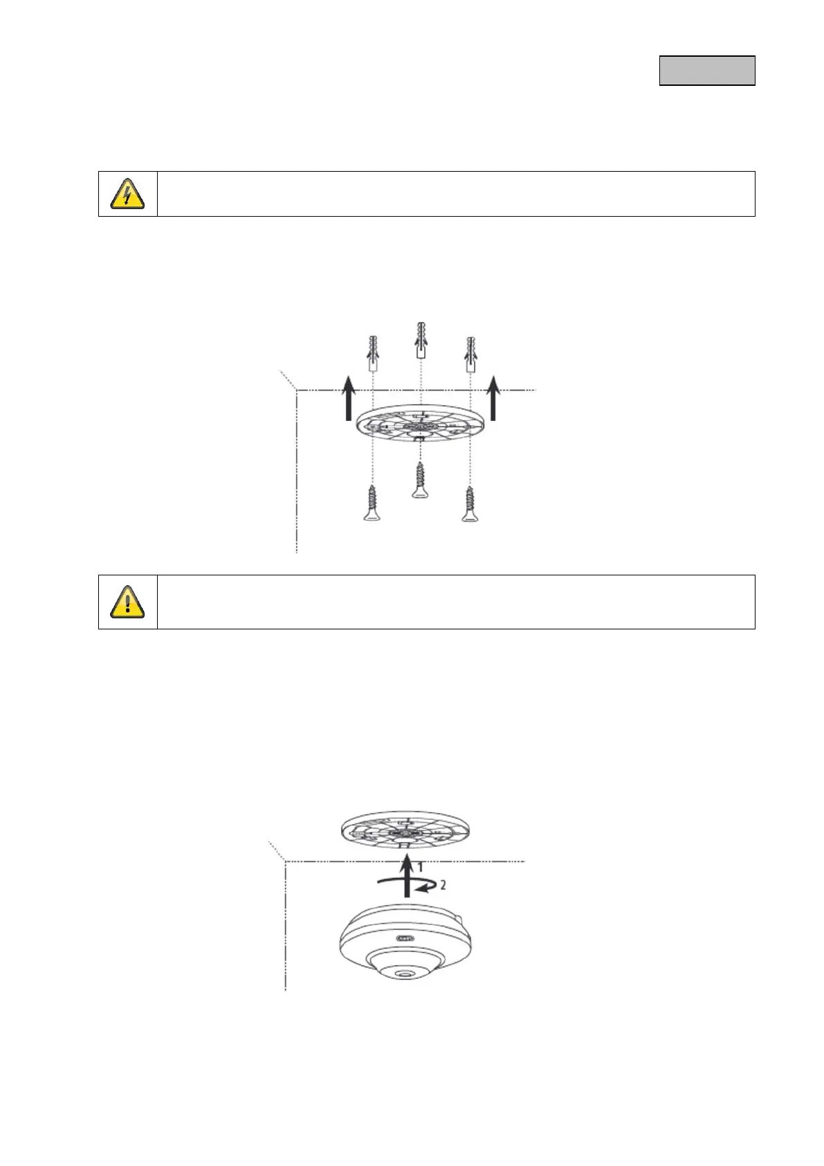 Coloque ahora la cámara en el soporte de techo. Las flechas de la cámara y el soporte de techo