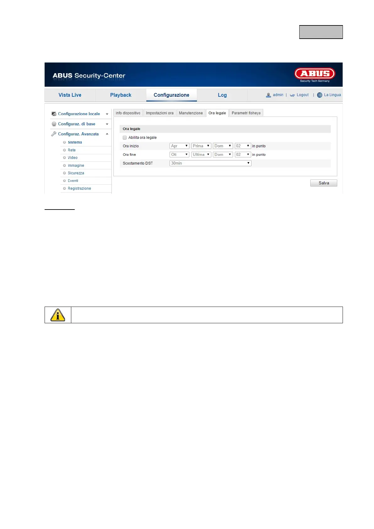 Selezionare “Ora legale” per adattare automaticamente l’ora del sistema all’ora legale.