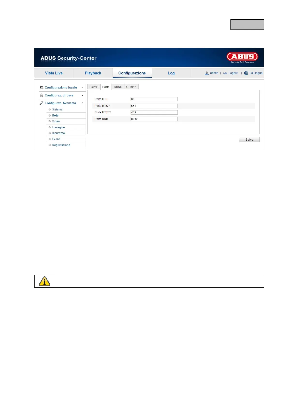 Se si desidera accedere dall’esterno alla telecamera è necessario configurare le seguenti porte.