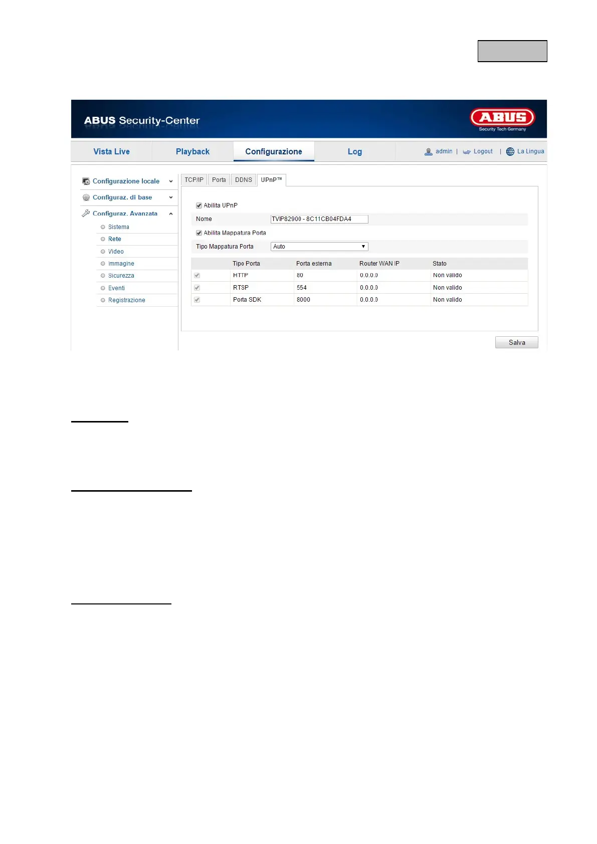 automaticamente il port forwarding per gli stream video della telecamera di rete da parte del router.
