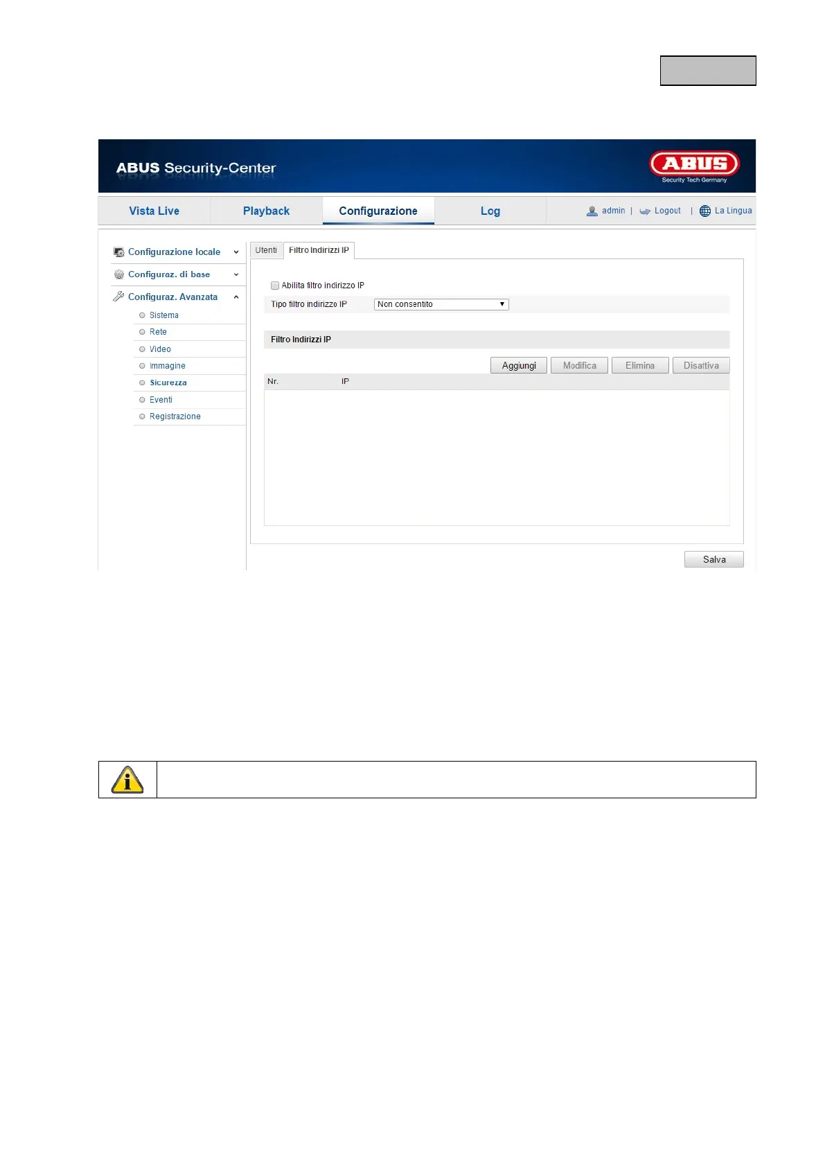 Ammessi: gli indirizzi IP indicati sotto sono ammessi per eseguire l’accesso alla telecamera.
