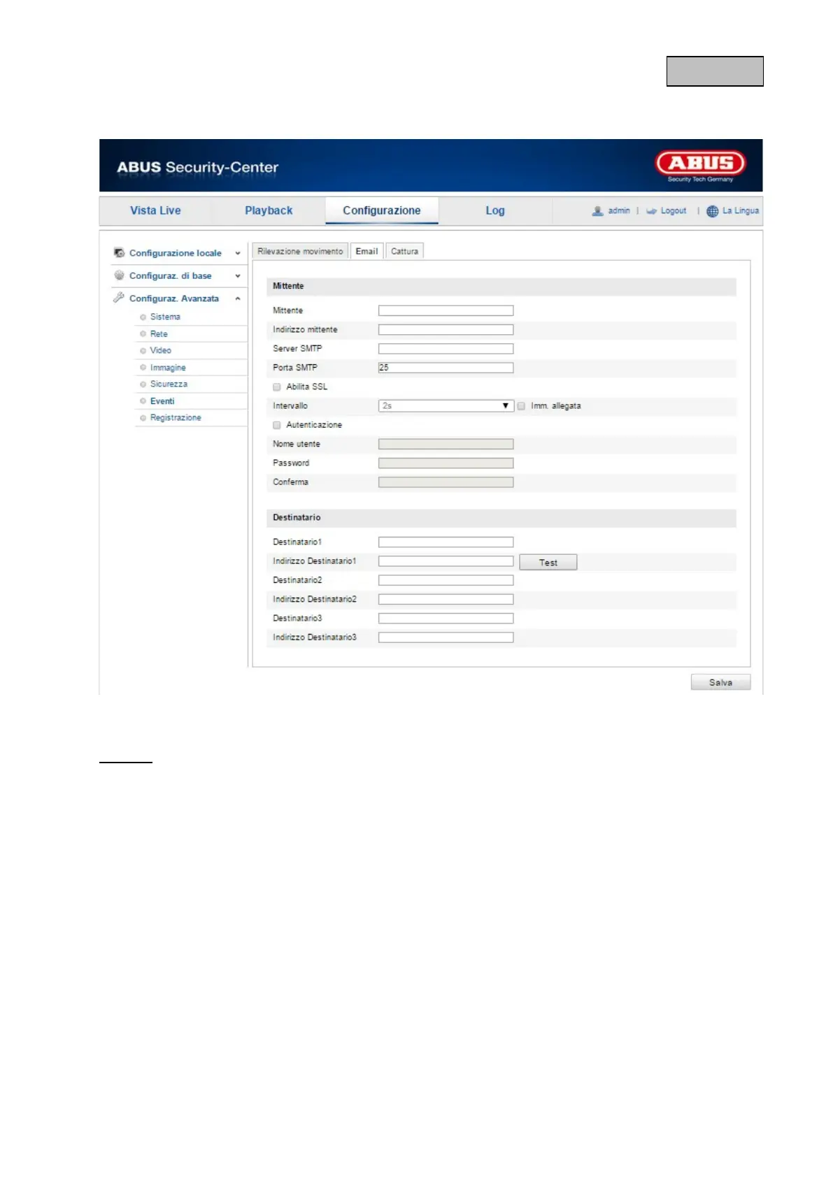 Qui è possibile eseguire le impostazioni relative all’invio di e-mail.