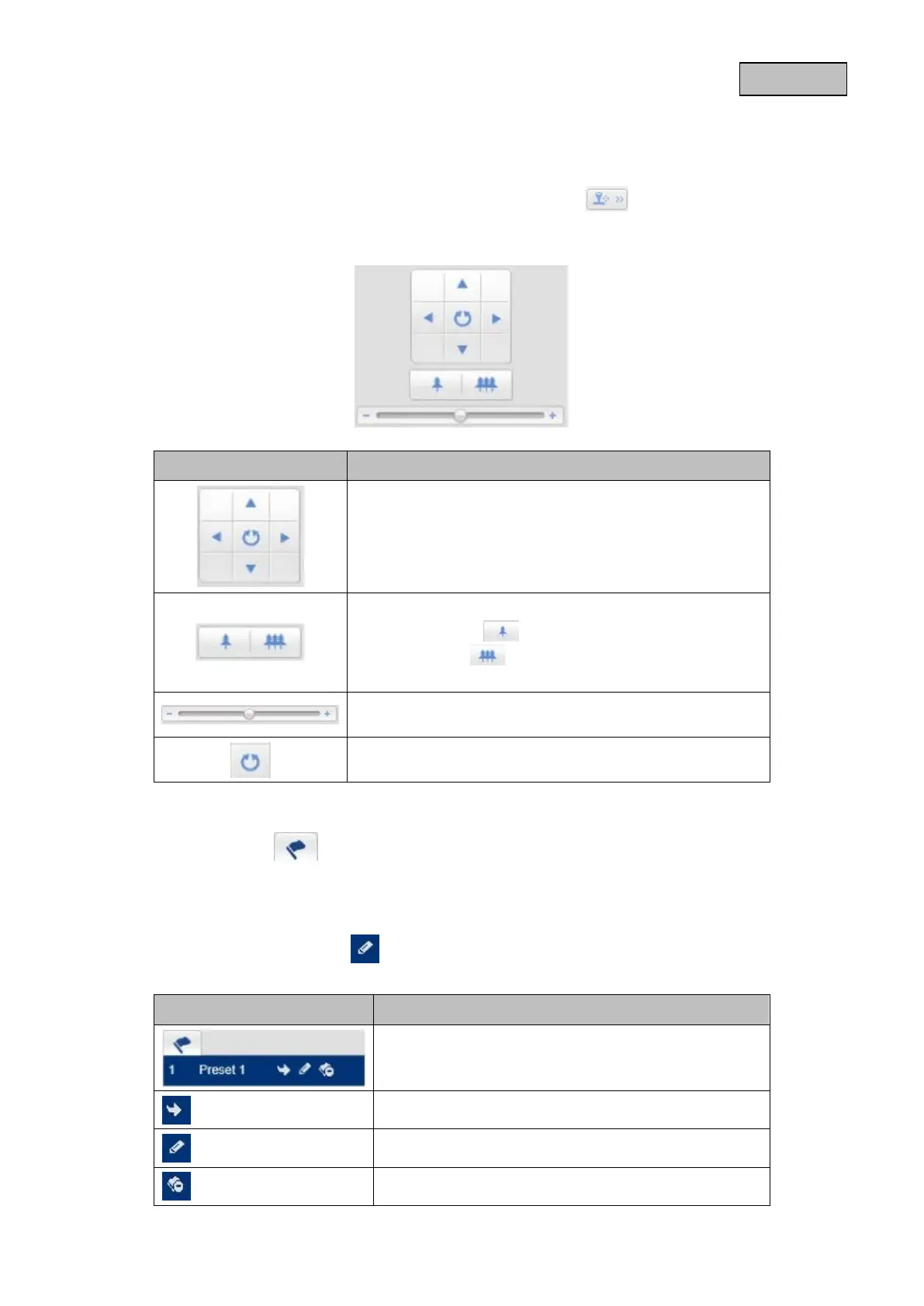 Välj fliken "Preset" för att hämta, ställa in och ta bort upp till 32 preset-positioner. Använd