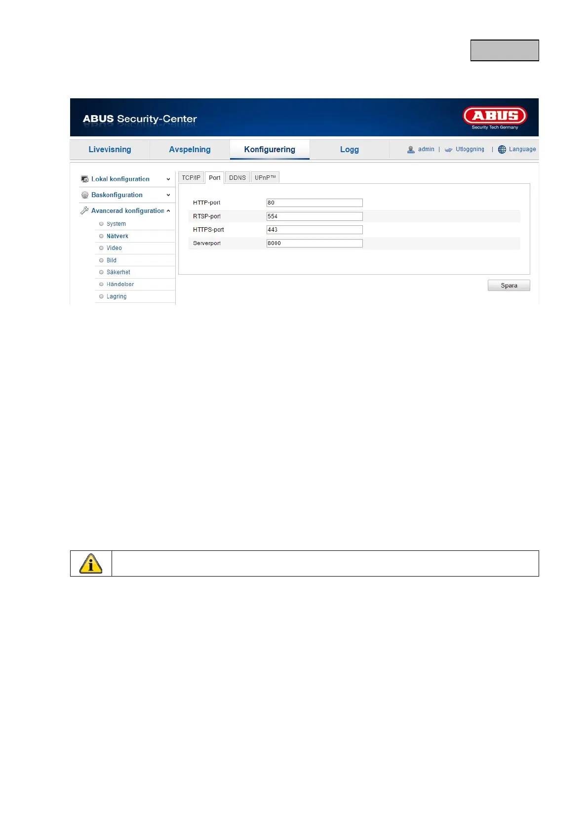 Port 554 är standardporten för RTSP-överföring. Alternativt kan denna port få ett värde i området