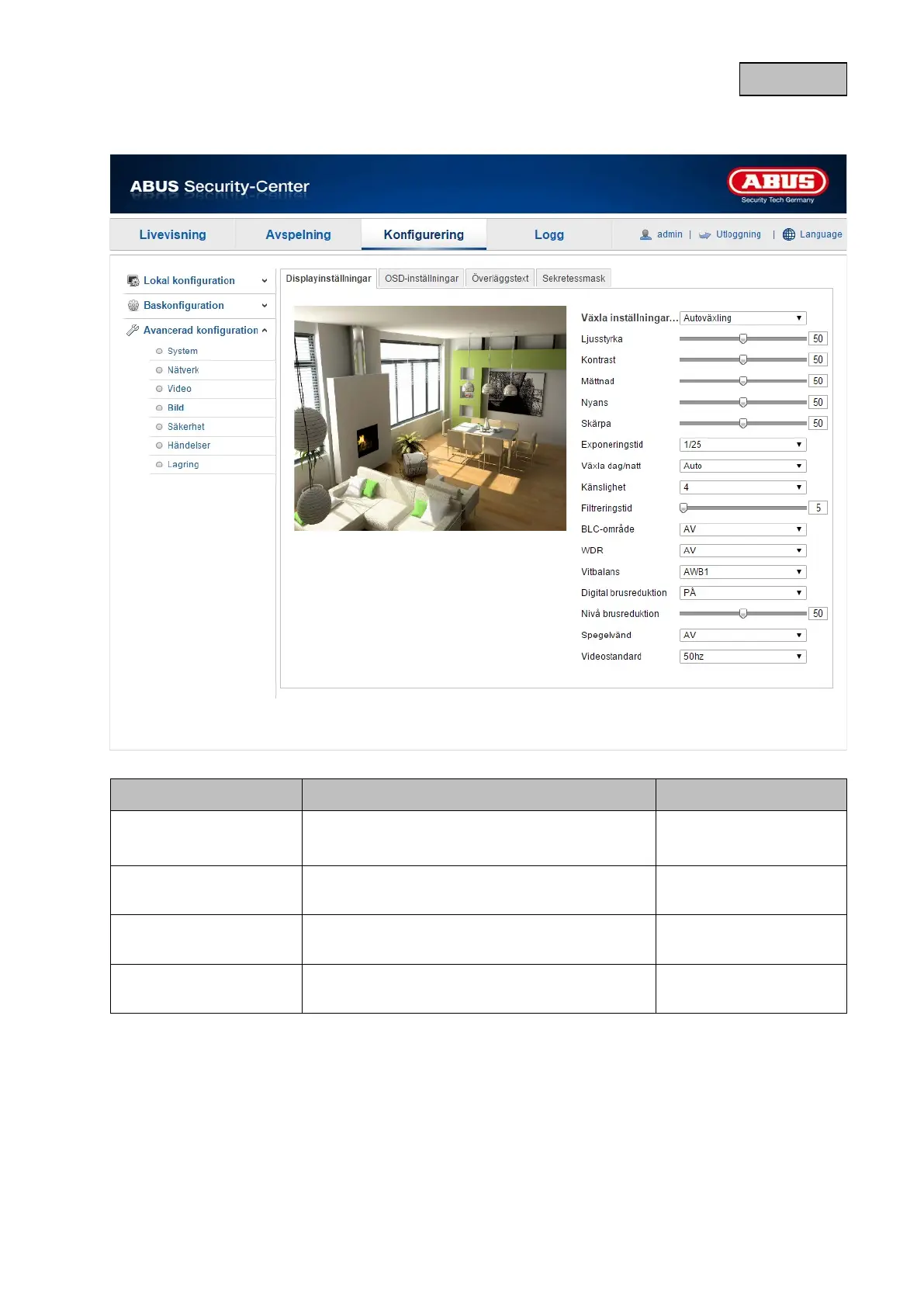 Abus TVIP82900 - Bild; Visningsinställningar; OSD-Inställningar