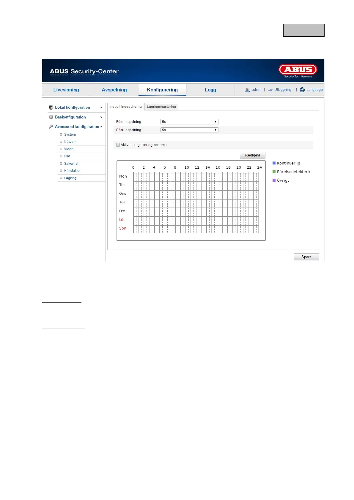 Här kan du göra konfigurationen för tids- och händelsestyrda inspelningar för att ladda upp dessa på