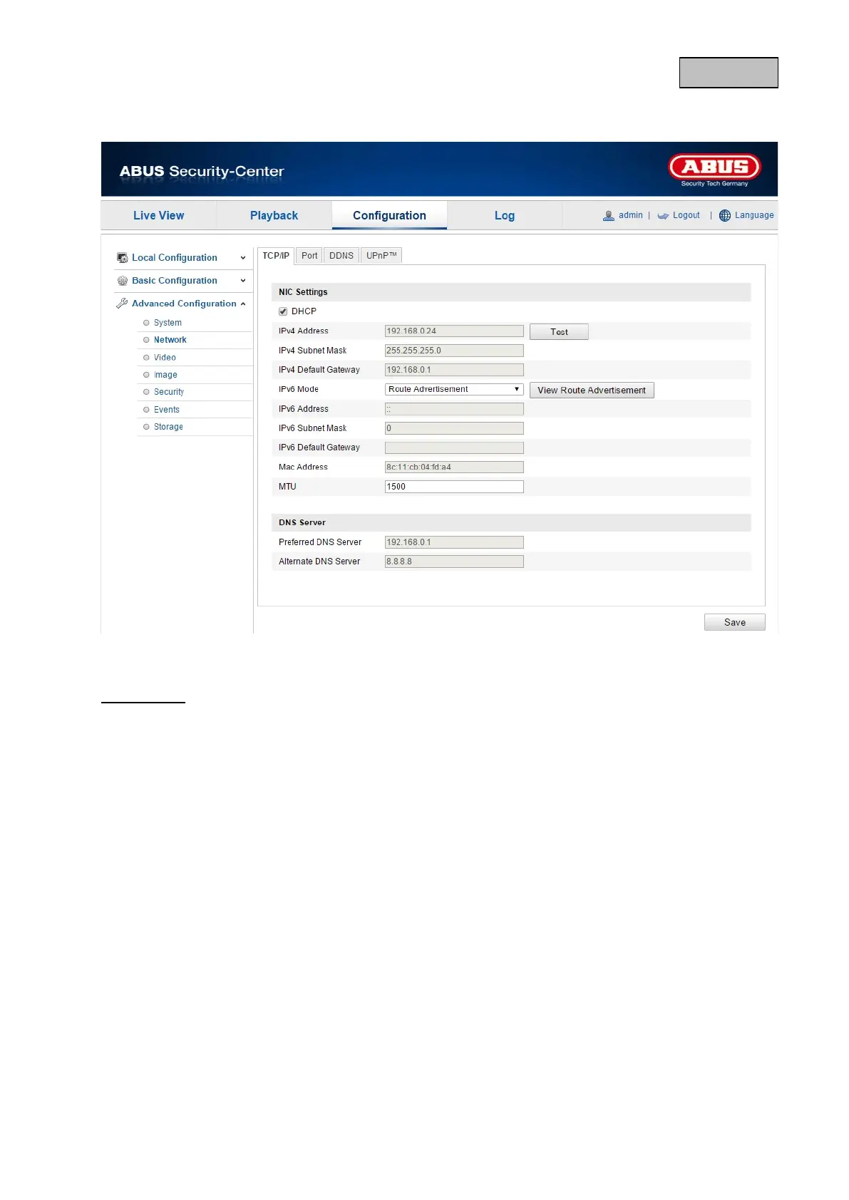 If a DHCP server is available, click on "DHCP" to apply an IP address and other network settings