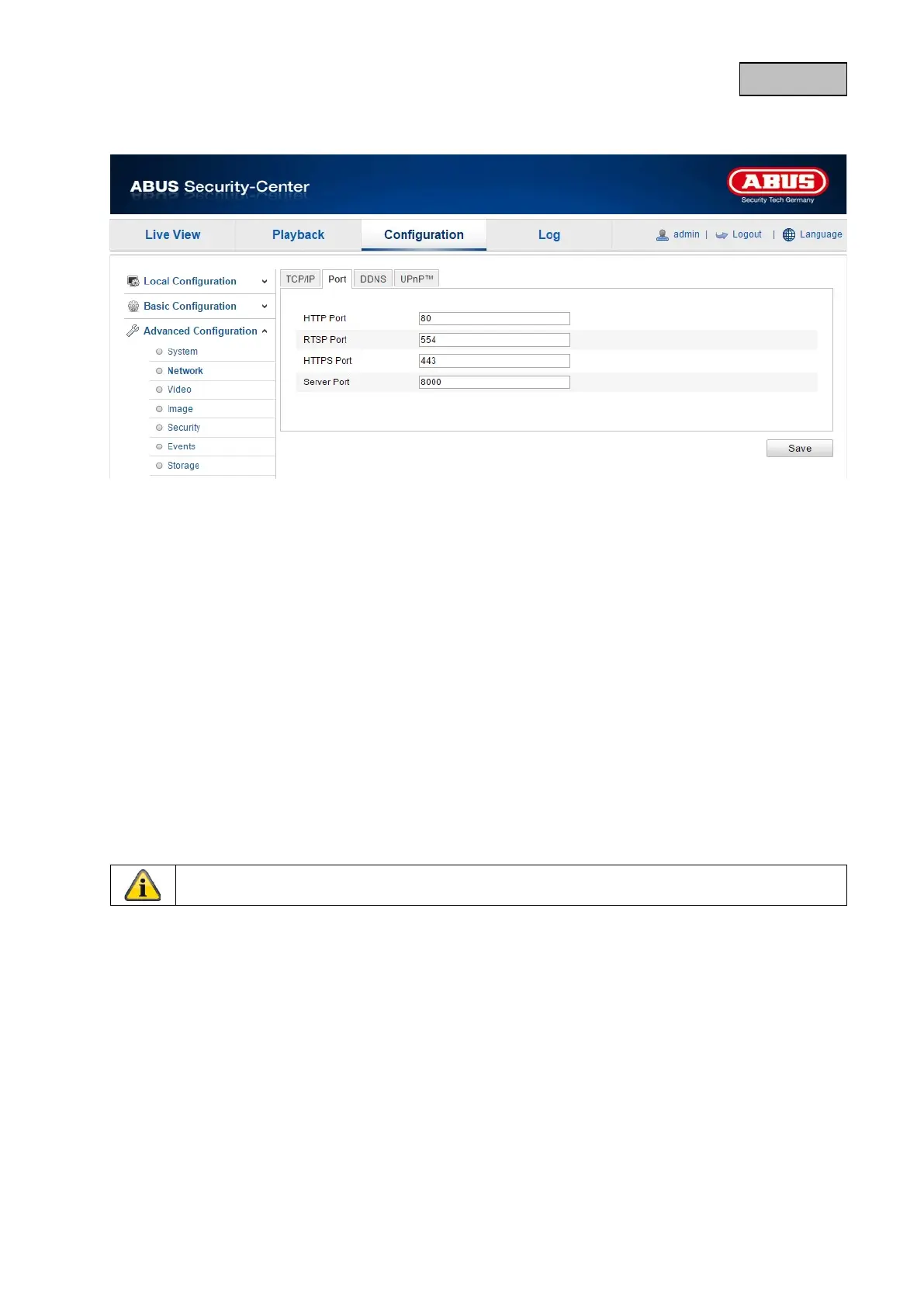 The default port for RTSP transmission is 554. This port can alternatively be assigned a value in the