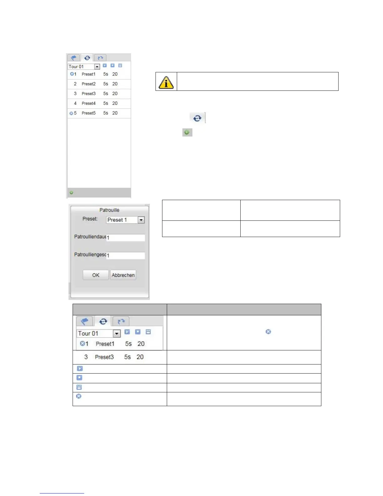 A patrol consists of a series of presets. You can create up to 8 patrols, each