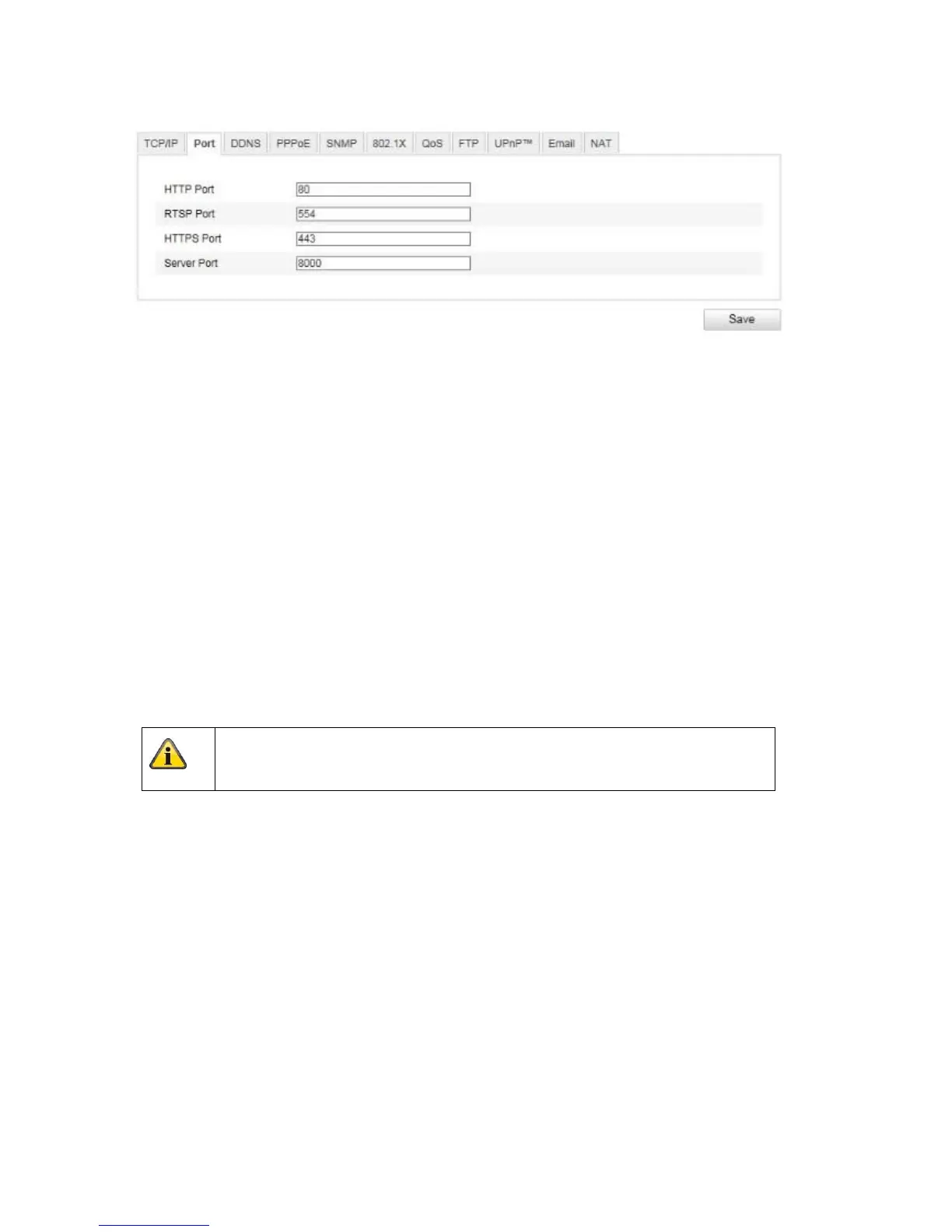 The standard port for RTSP transmission is 554. This port can alternatively be assigned a value in the range