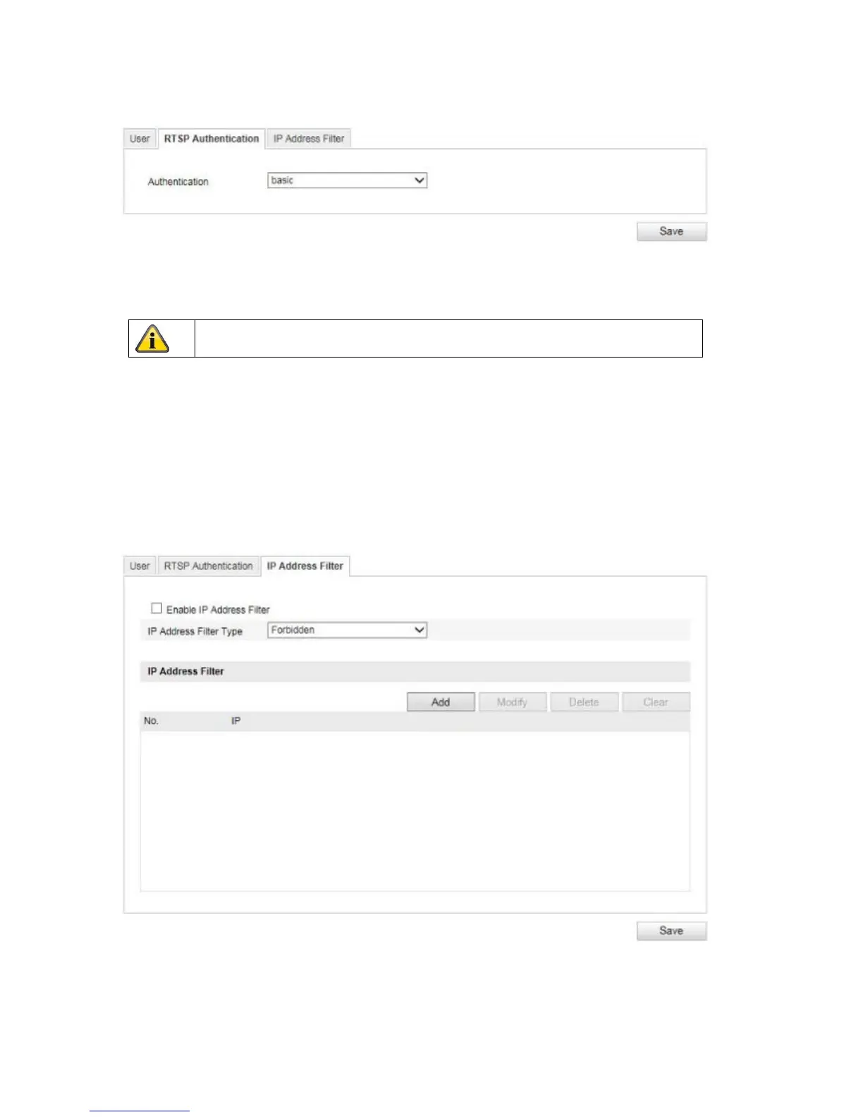 Allowed: The IP addresses detailed further below can be used to access the camera.