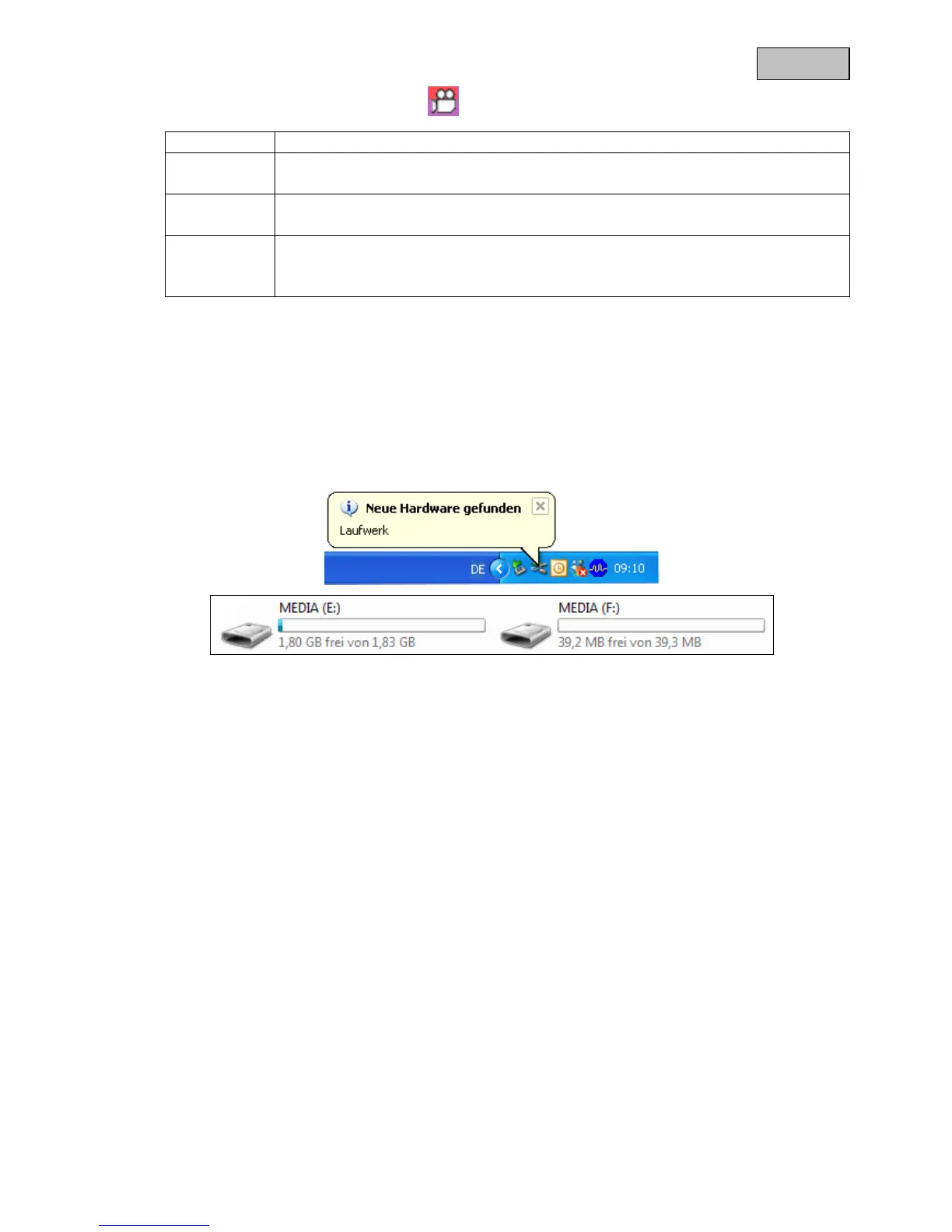 ein. Nach wenigen Sekunden erkennt Ihr Computer/Laptop den Camcorder und