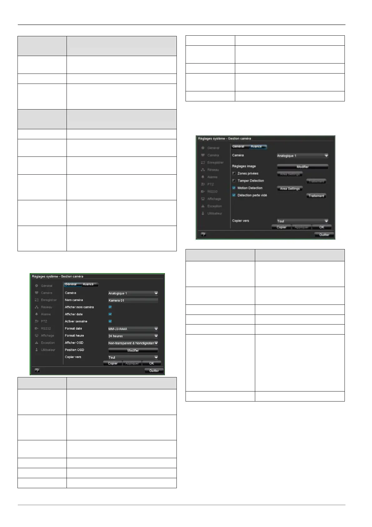Paramètres: Caméra