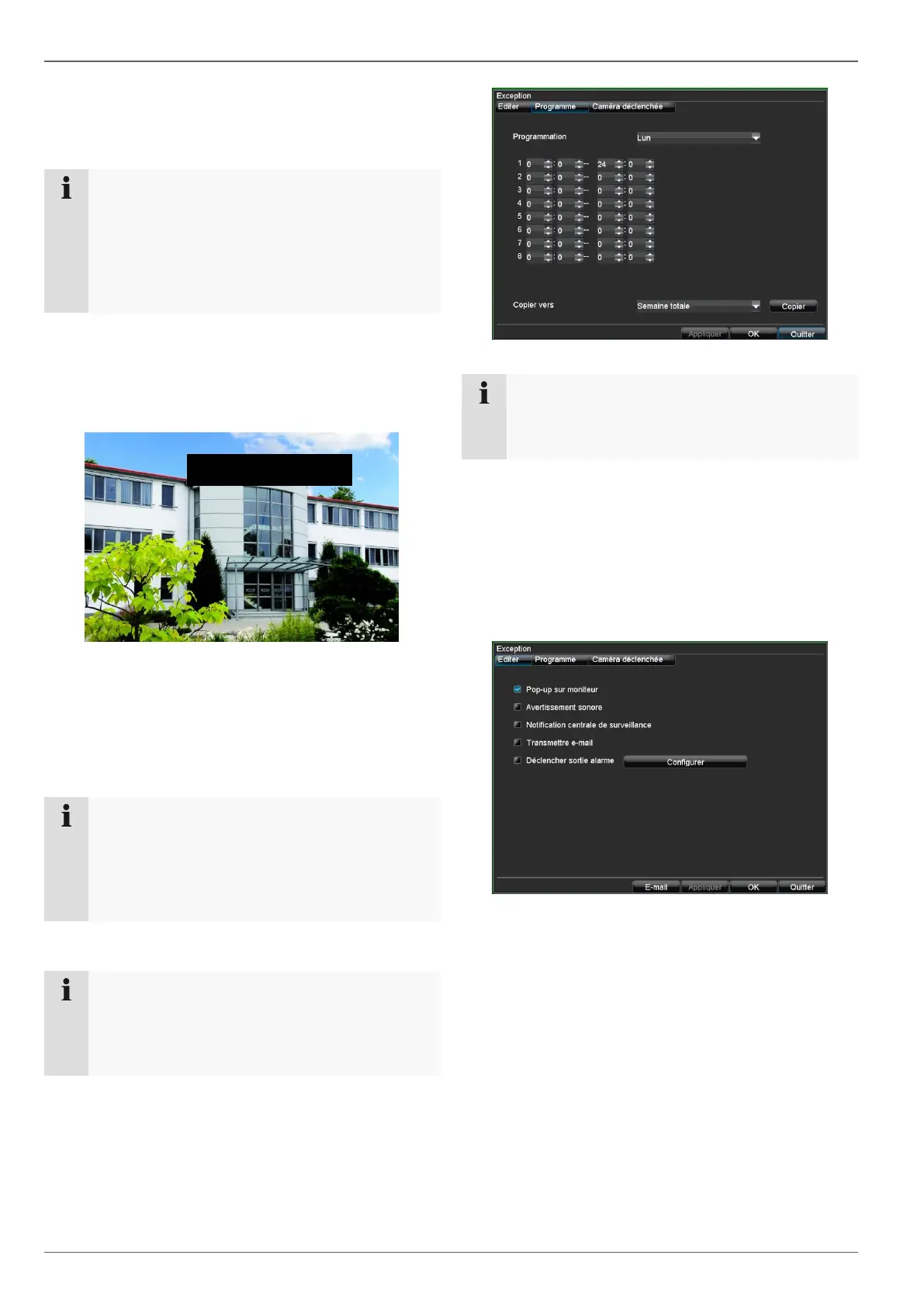 Pour la vidéosurveillance, vous pouvez définir des