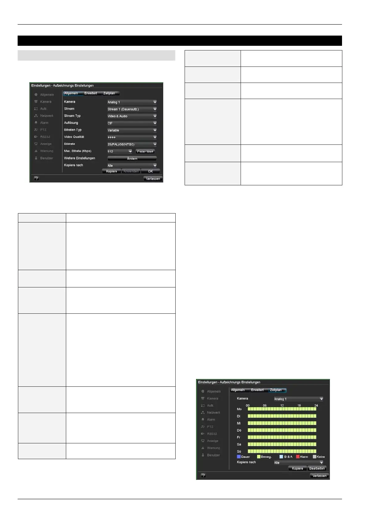 Mittels des Zeitplans werden die Aufzeichnungszeiten