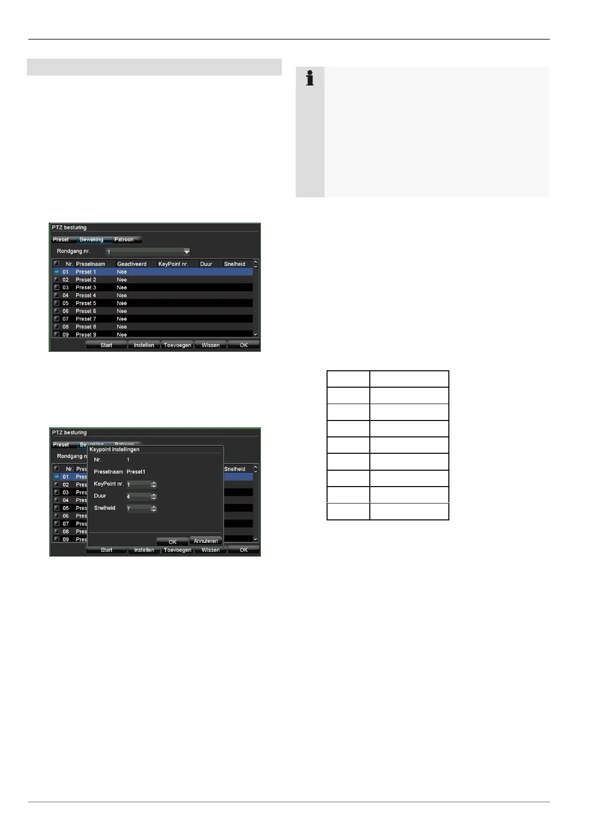 informatie kan in de handleiding van de PTZ camera