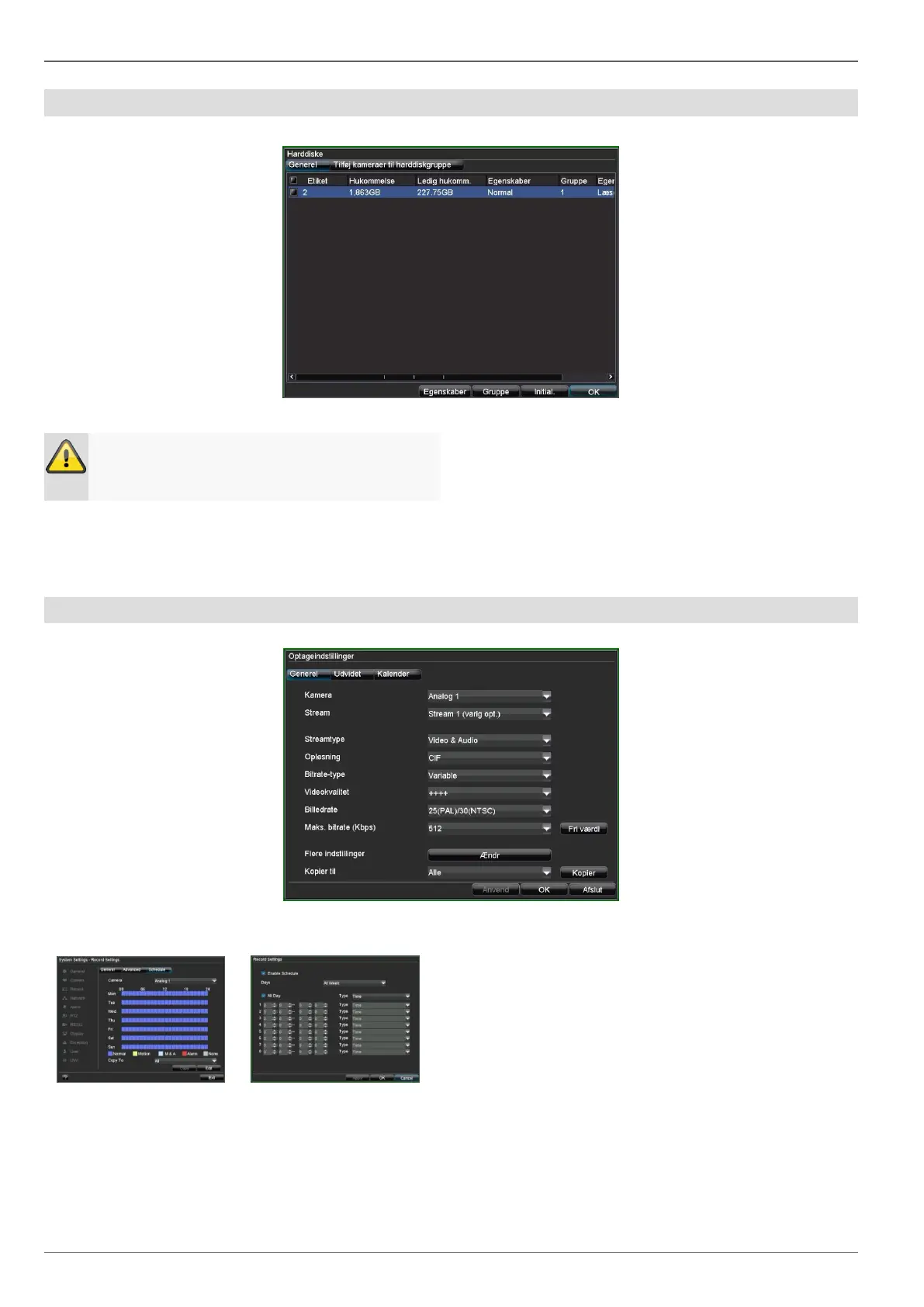 4. Aktivér „afkrydsningsboksen“ Enable Schedule og All Day. Dermed er optagelsen for hele dagen tilkoblet.
