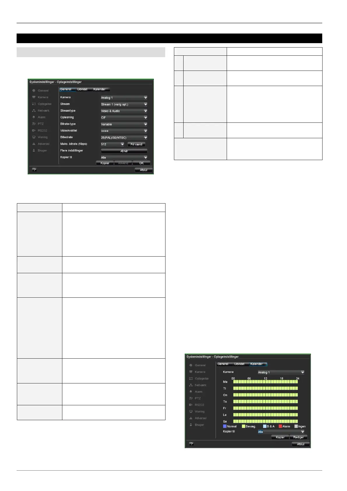 Ved hjælp af tidsplanen indstilles optagelsestiderne eller