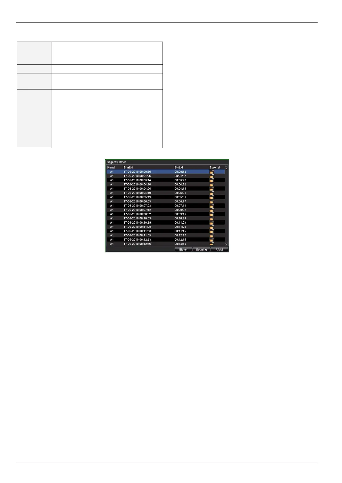 Klik på Search for at søge optagelser i henhold til de valgte indstillinger. Resultaterne vises: