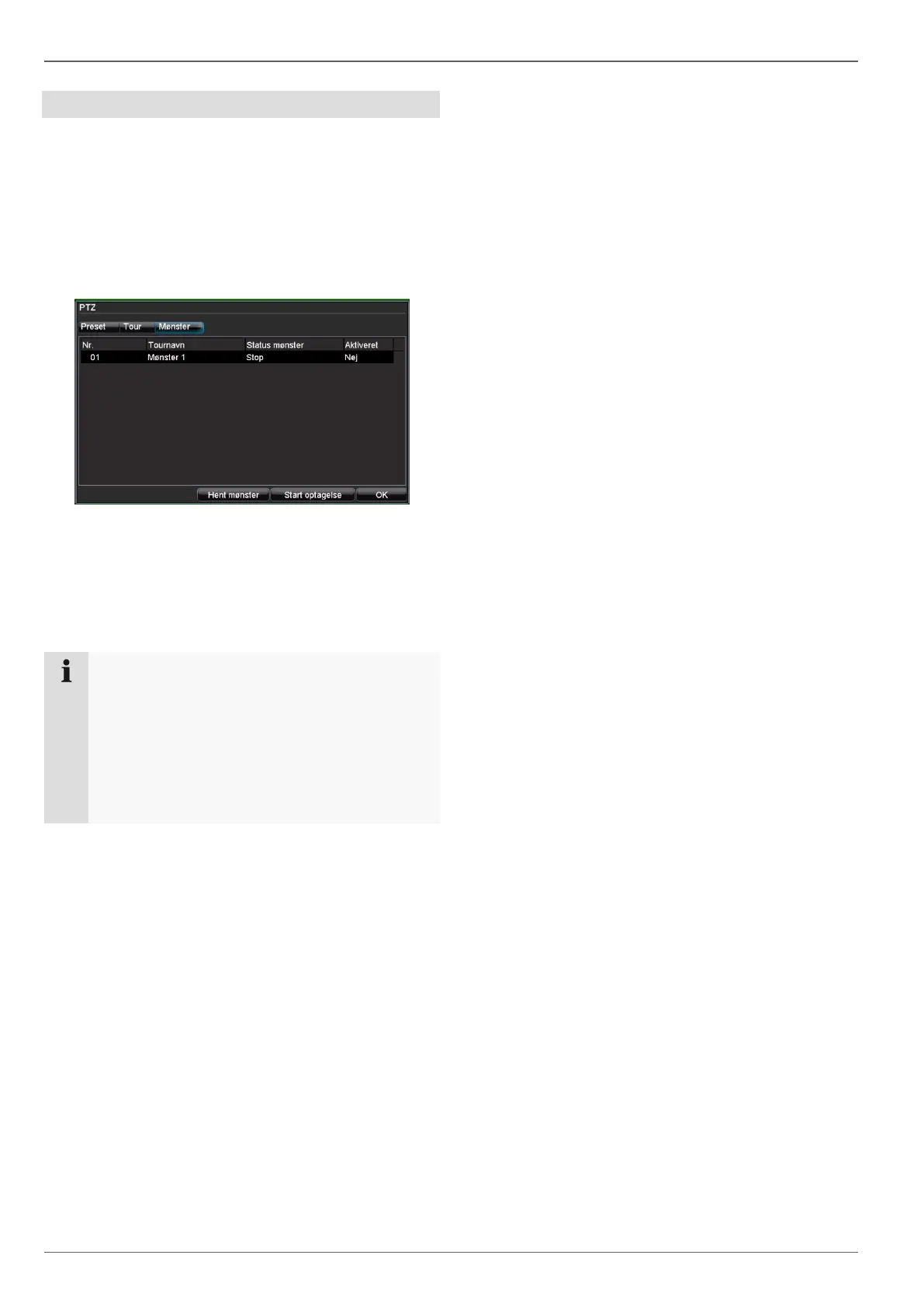 vil optage som mønster, med PTZ-kontrolfeltet.