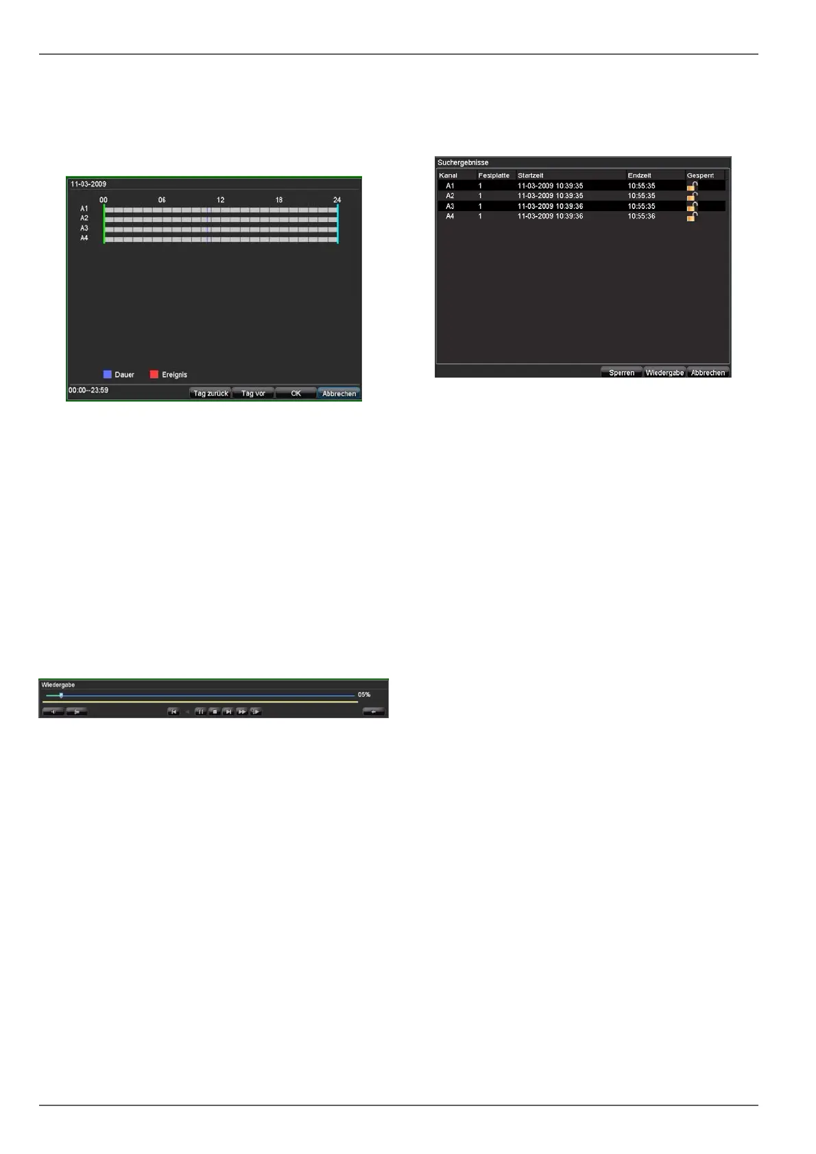 Die Aufzeichnungen der gewählten Kameras werden
