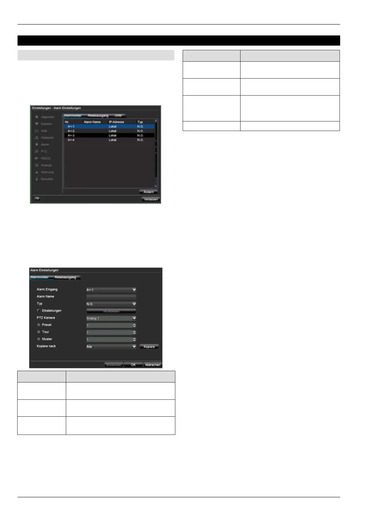 Die Alarm-Einstellungen regeln detailliert die Art der Ka-
