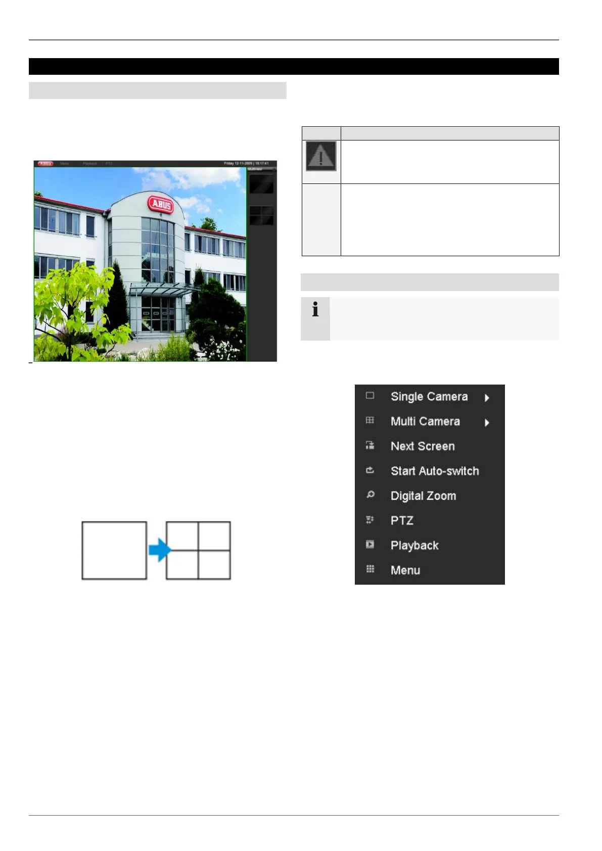 The signals of the connected cameras are displayed on