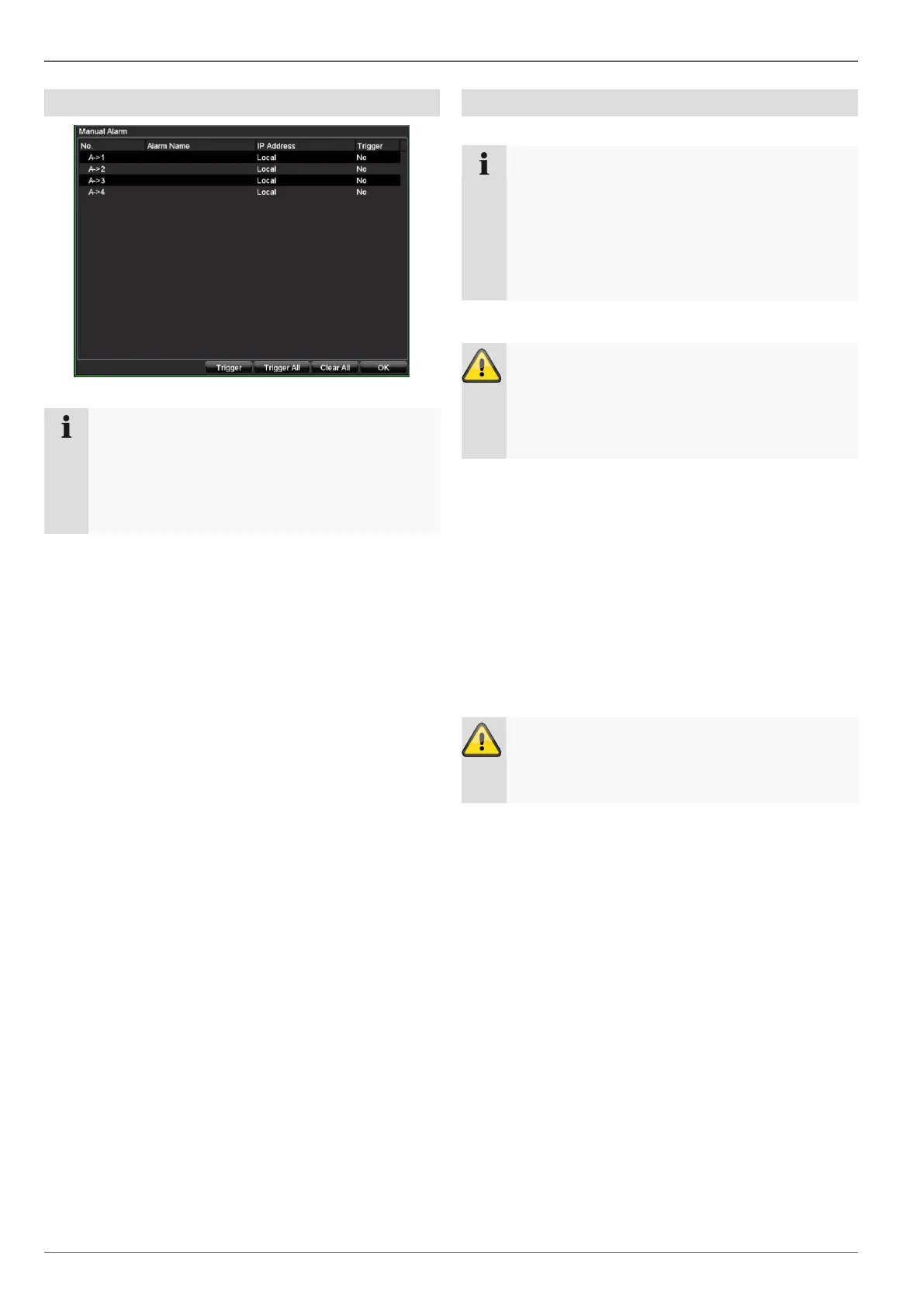 2. Click on Trigger to switch on the alarm manually.
