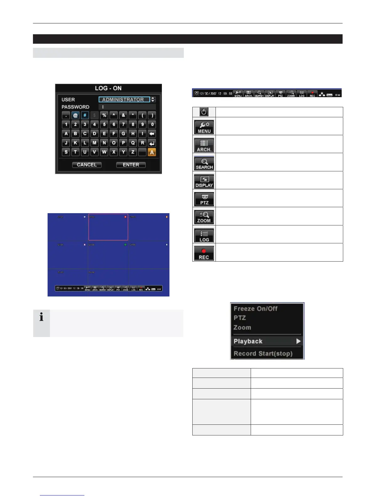 After the boot process the DVR automatically starts in the