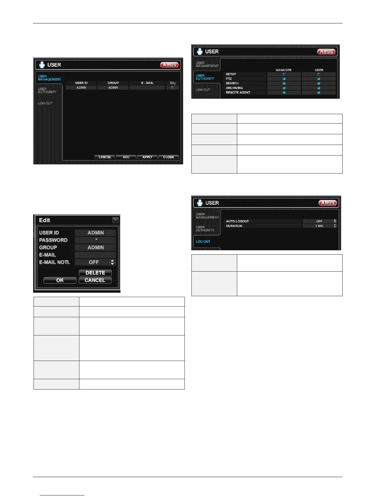In case of selecting AUTO LOGOUT