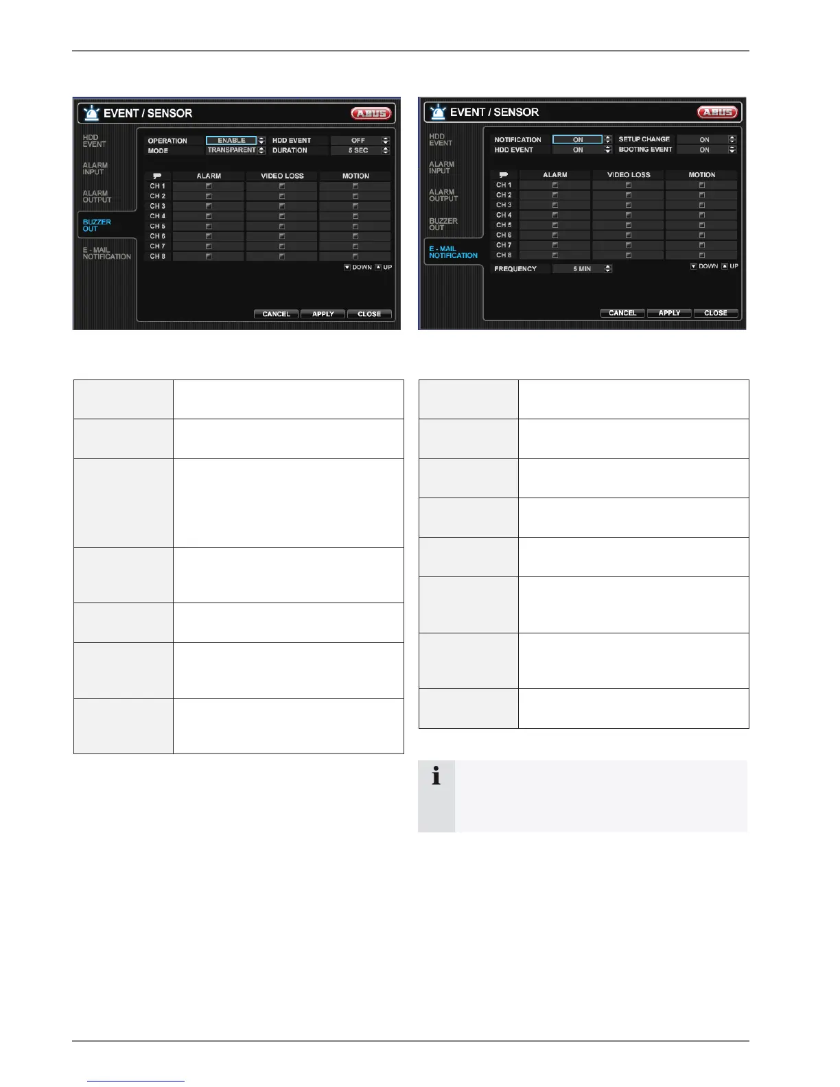 FREQUENCY E-mail sending period (Max. 60 min-