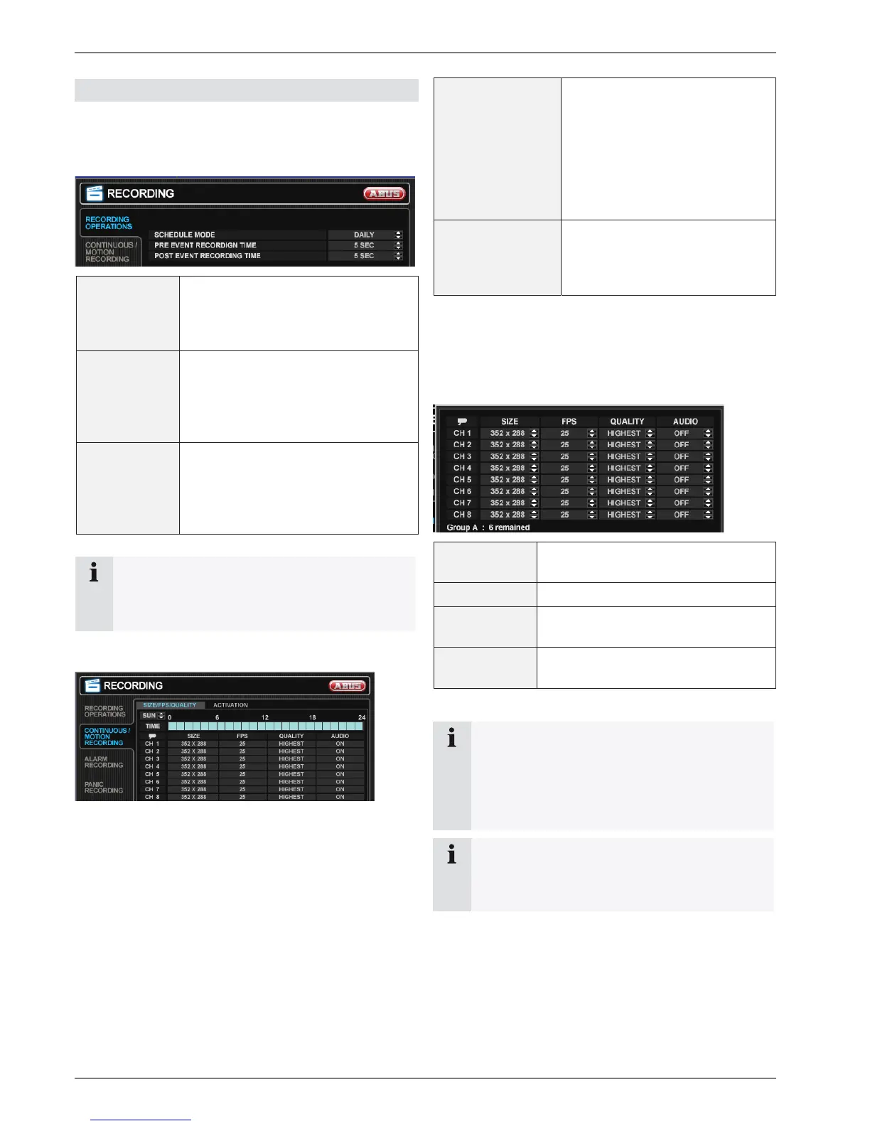 In this menu the recording behaviour of the DVR is set