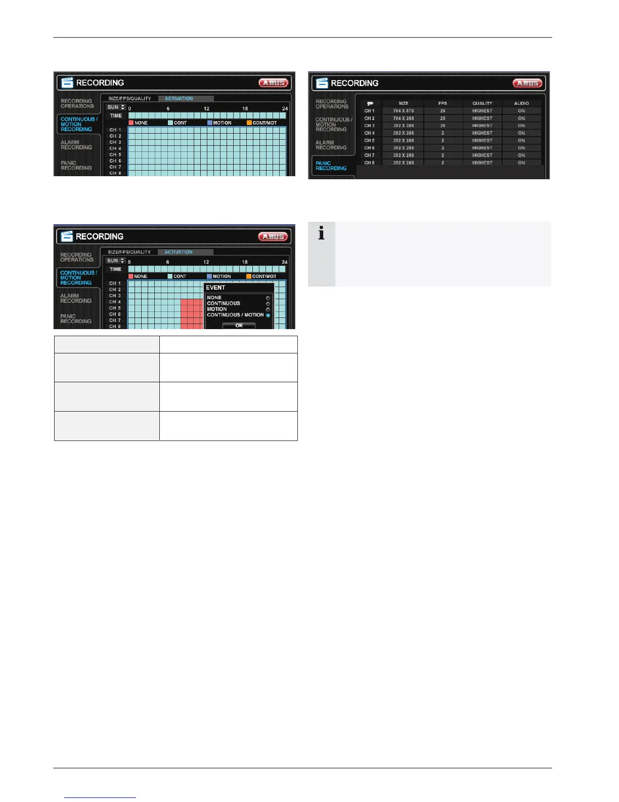 on setting up SIZE/FPS/QUALITY and ACTIVIATION.