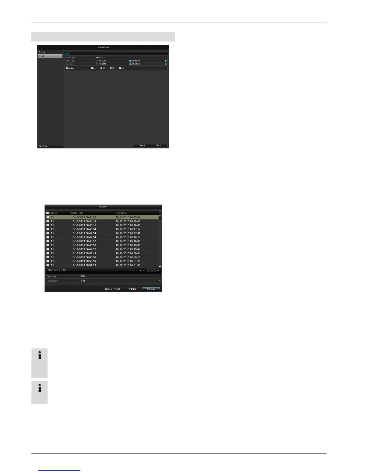For both types of event, the following window appears af-