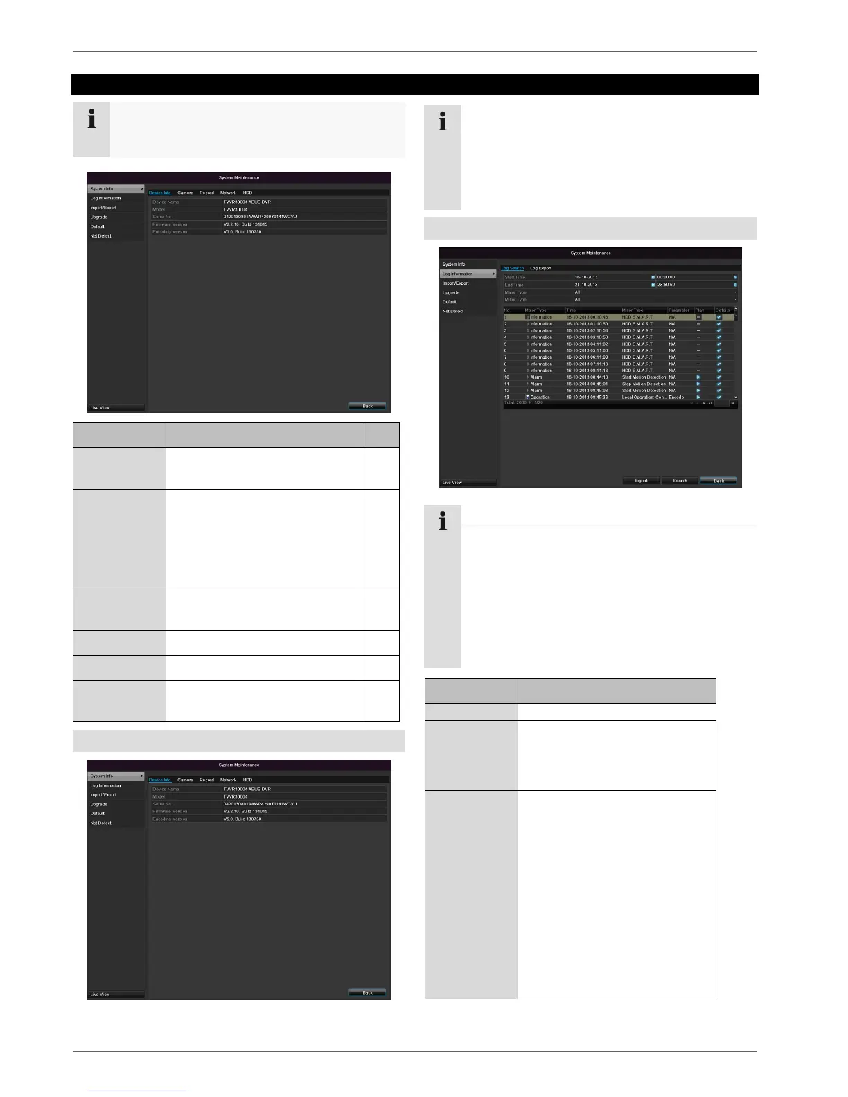 This menu is used for device maintenance, and